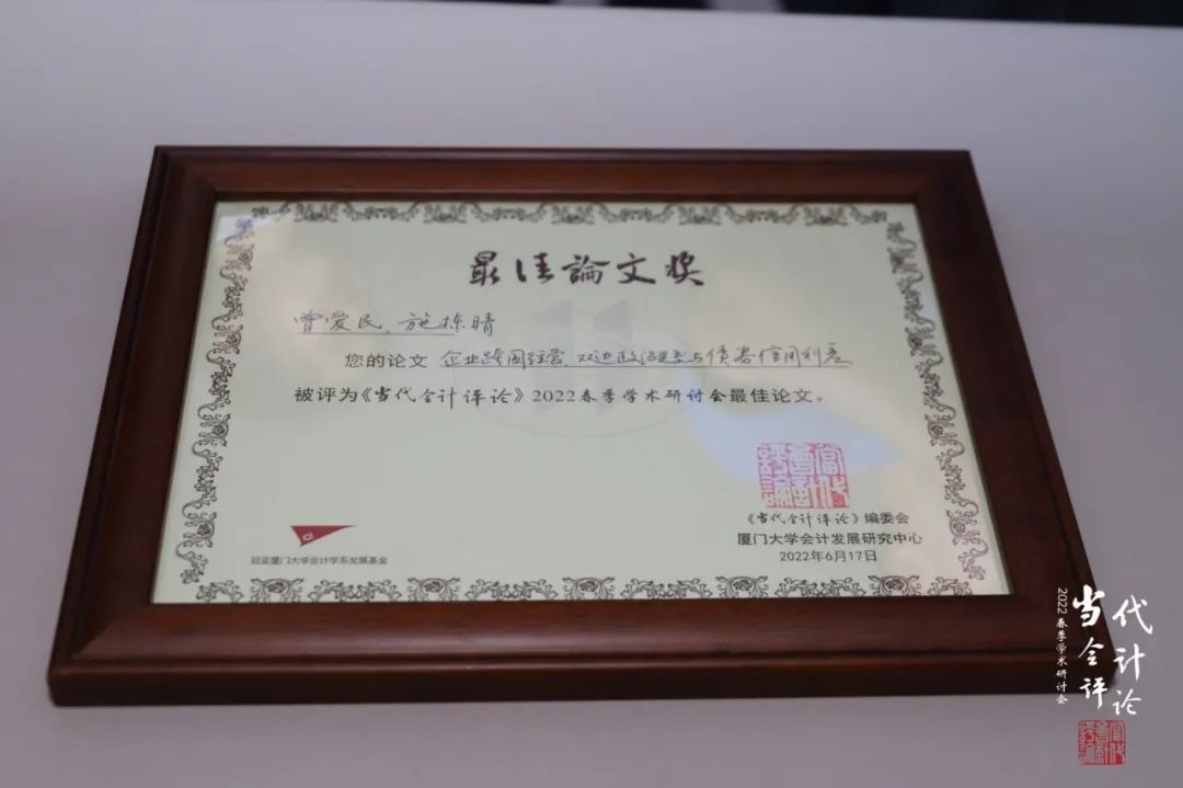 Through the voting of the paper review committee group, the best paper award in this academic seminar was awarded to Shi Dongqing, student of Zhejiang University of Industry and Commerce (enterprise transnational operation, bilateral political relations and credit spreads of creditor's rights); The Best Comment Award was awarded to Mr. Li Rong, who applied for slaughter at Xiamen University (Comments on transnational business, bilateral political relations and bond credit spreads).