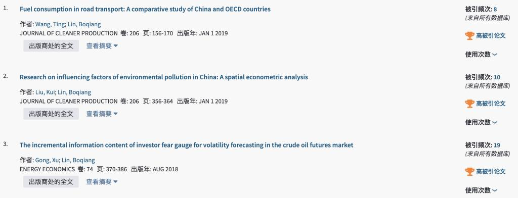 据ESI(Essential Science Indicators)数据库2019年11月的数据显示,厦门大学管理学院中国能源政策研究院院长、能源经济与能源政策协同创新中心主任林伯强教授为通讯作者发表的3篇学术论文新增入选为ESI高被引论文(ESI-Highly Cited Papers)。截至目前,以林伯强教授为第一作者或通讯作者的学术论文共有43篇入选ESI高被引论文。