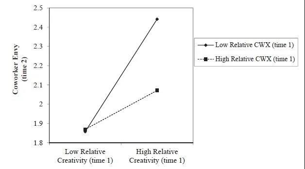 图2:相对创造力和相对CWX对同事嫉妒的共同影响