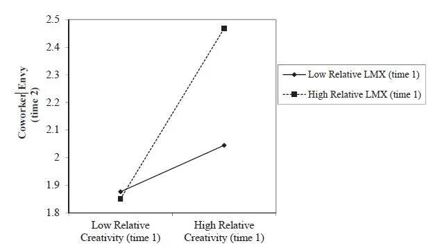 图1:相对创造力和相对LMX对同事嫉妒的共同影响