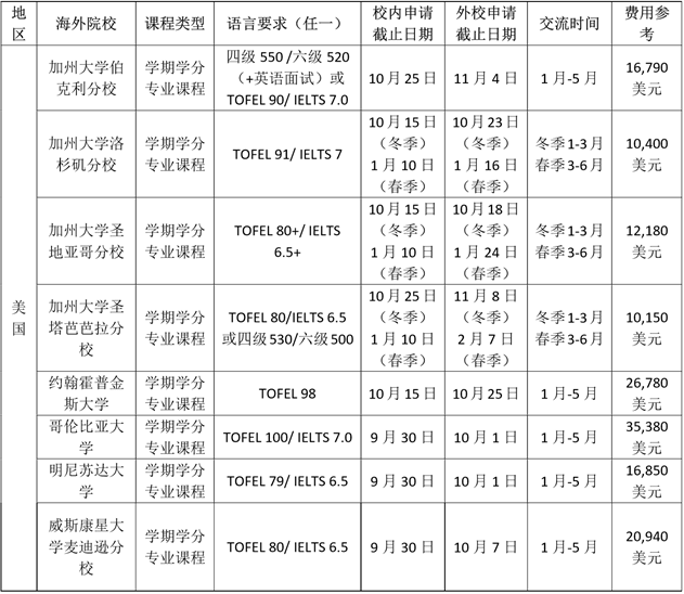 5. 交流学习结束后,同学凭借美国大学成绩单,依据所在院系的培养大纲及学分转换标准可申请转换我校的相应学分。