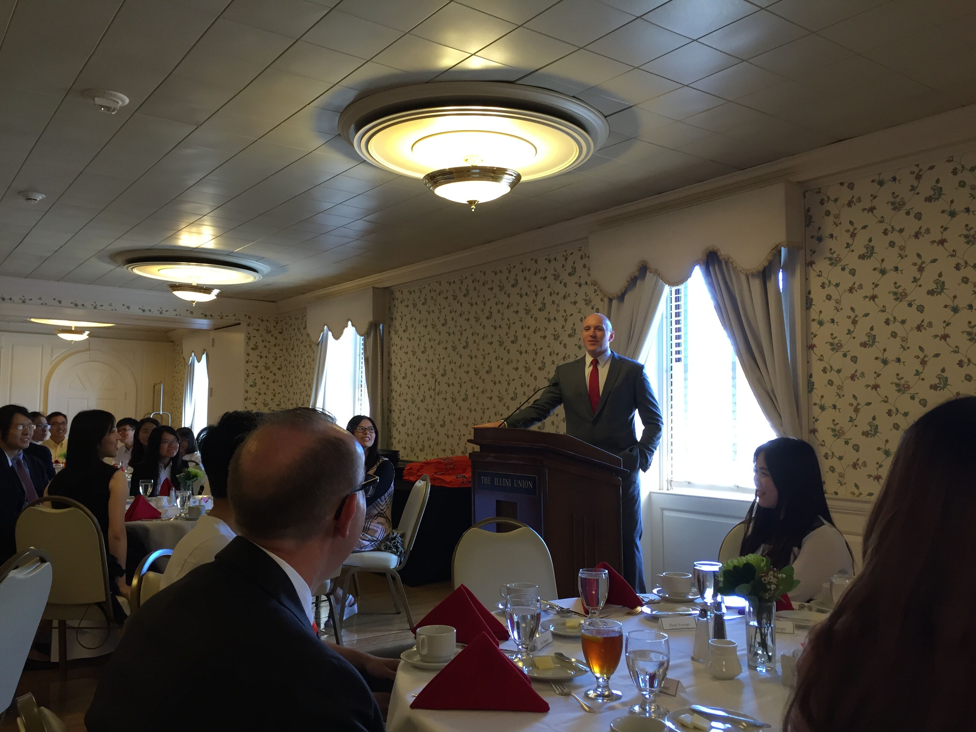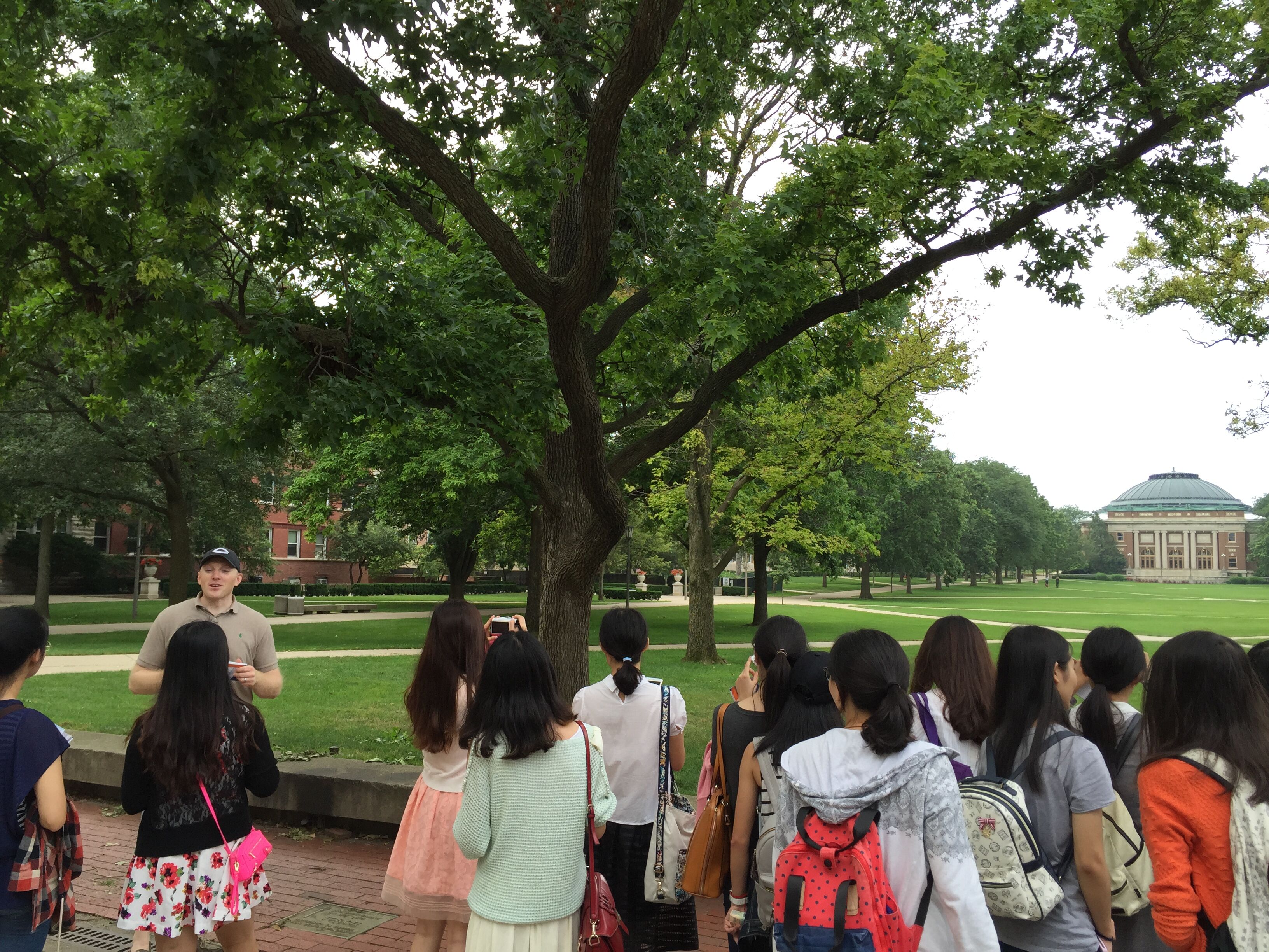 抵达UIUC的第二天,在对方老师Matt的带领和介绍下,同学们参观了校园,并对UIUC美丽的风光和别具特色的建筑赞叹不已,这座美丽的大学城拥有完善的校园设施,藏书无数的图书馆、多元化餐厅、运动设施齐全的运动馆、各式各样的实验室,无一不让人为之赞叹。