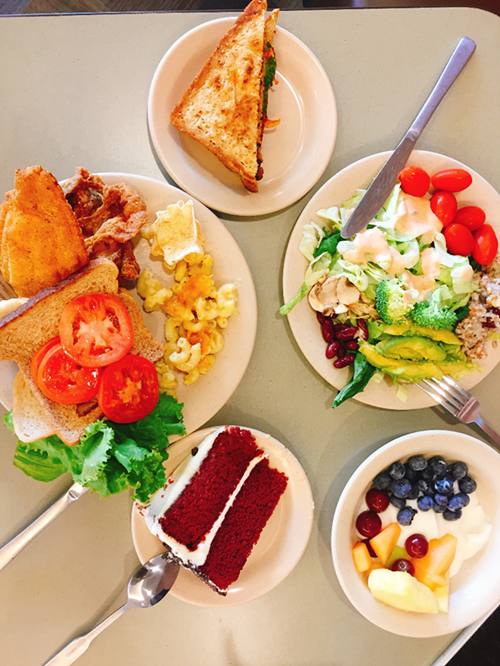 日常生活除了学习,吃饭和娱乐占据了很大一部分比重。食堂主要是Ikenberry,进门就直接刷卡,是自助餐的形式,从第一天早上就爱上了,每天的种类都很多,可以充分选择,主食、水果、奶制品、饮料、冰淇淋,一应俱全,偶尔还会推出迎合中国人口味的食物,我最喜欢的是水果和酸奶,原味酸奶无添加保留了原有的酸味再淋上蜂蜜和新鲜的蓝莓,那种味道念念不忘,而水果则是糖分水分很足,吃起来口感满分,除此之外甜点里的牛奶和巧克力味道都很纯正,餐厅里的显示屏会播放公交的到站时间,方便合理安排饮食时间。UIUC的娱乐设施非常多元,日常我们会一起去打保龄球和台球,学累了会去宿舍楼下打桌上足球,健身房的设施齐全,短短两周内我只体验了攀岩、游泳、打篮球、登山机跑步机等,还有一些舞蹈、健身、拳击类的课可以预约,不爱运动的我却对这些运动充满了兴趣,和小伙伴们一起体验的感觉也十分难忘。