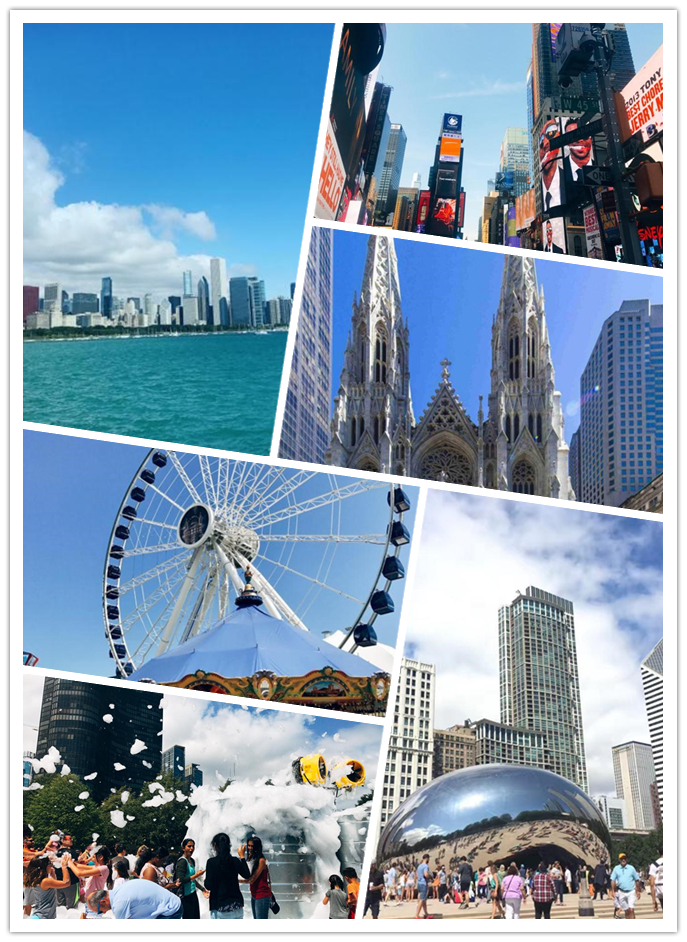 印象最深刻的是如同大海一样湛蓝的密歇根湖,华盛顿的艺术博物馆中各个历史时期各个流派的艺术作品,自然博物馆里面的动物、人类与自然,以及金碧辉煌的第五大道和时代广场。