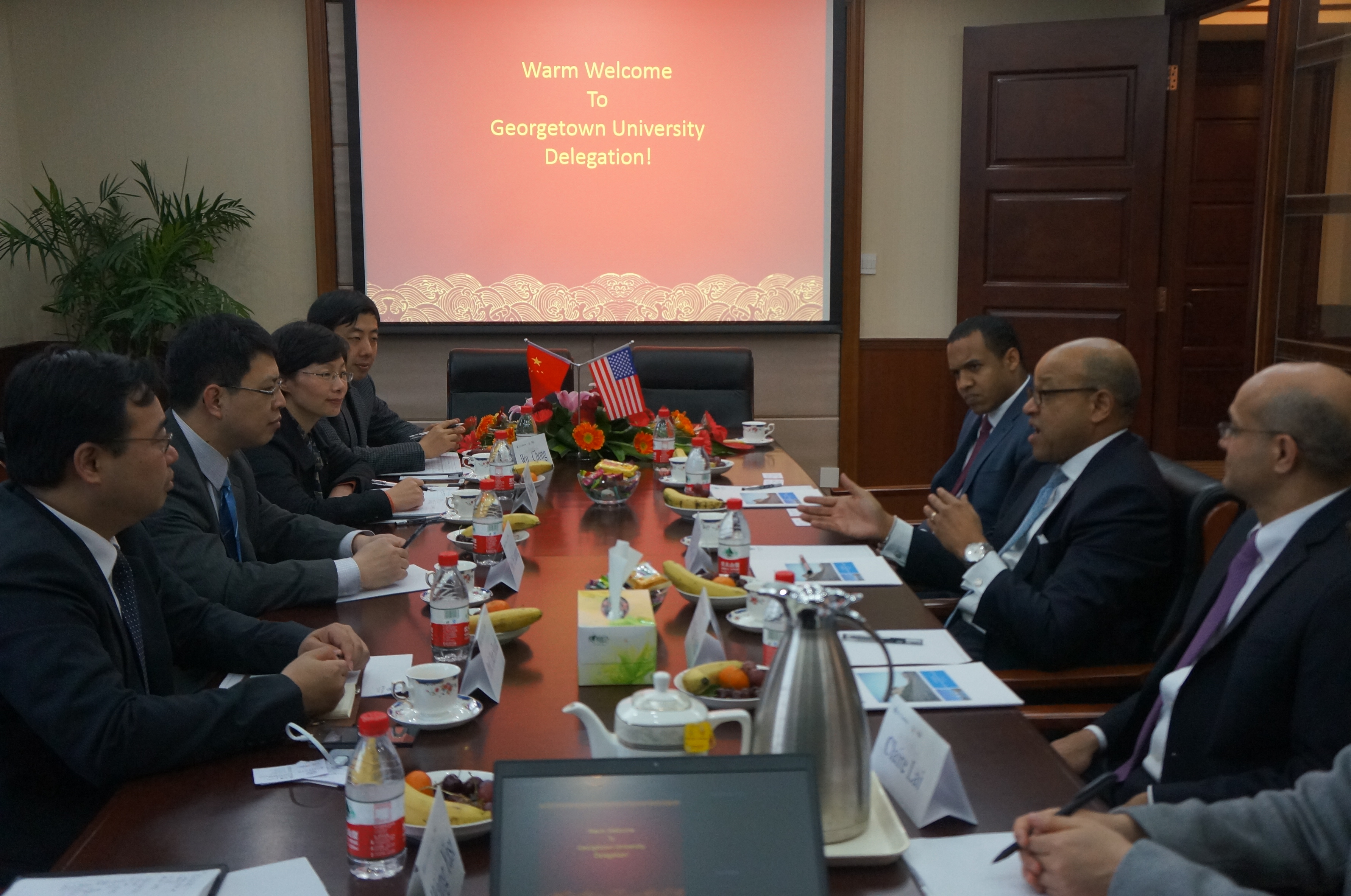 2015年1月16日,美国乔治城大学麦克多诺商学院(McDonough School of Business, Georgetown University)代表团一行在院长Prof. David Thomas带领下,来访管理学院。我院院长叶建明教授会见了对方代表团,并进行了友好亲切的交流。代表团人员还有麦克多诺商学院副院长Prof. Paul Almeida和行政总监Mr. Matthew Lewis。我院EMBA中心主任陈守德教授、MBA中心主任吴文华教授、副主任吴翀副教授等人员出席了座谈。