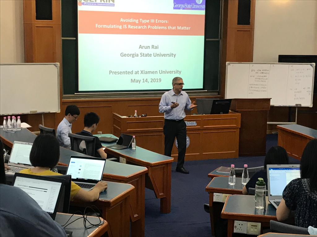 2019年5月13日至5月14日,乔治亚州立大学(Georgia State University)的Arun Rai教授受邀至厦门大学管理学院管理科学系开展学术讲座。此次讲座以“Avoiding Type III Errors: Formulating IS Research Problems that Matter”和“Getting Behind Closed Doors: Developing Fan Engagement in Subscription-Based Crowdfunding”为主题,旨在分享自己在有关领域的研究成果,为我院管科系青年教师和博士生在国际期刊上发表论文提供指导性意见。