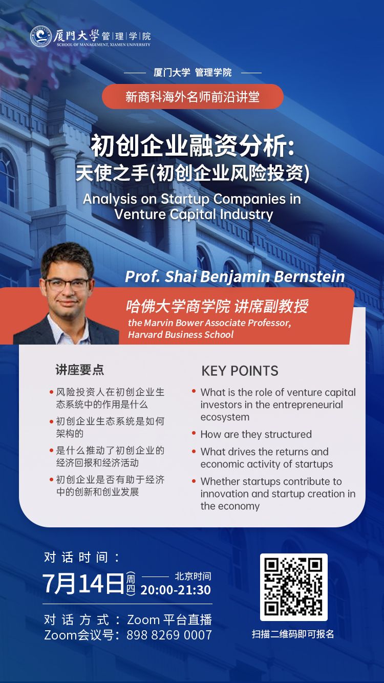 Shai Bernstein博士现任哈佛大学商学院讲席副教授,曾任斯坦福大学商学院副教授,在斯坦福大学讲授创业融资课程,担任美国国家经济研究所(NBER)研究员,拥有哈佛大学商学院博士学位。Shai Bernstein博士的研究兴趣聚焦创业融资与企业金融,在国际期刊发表风险投资、投资策略、资产配置方向论文十余篇。他的论文曾获得 Journal of Finance(JF;金融领域学术期刊Top1)最佳论文奖。