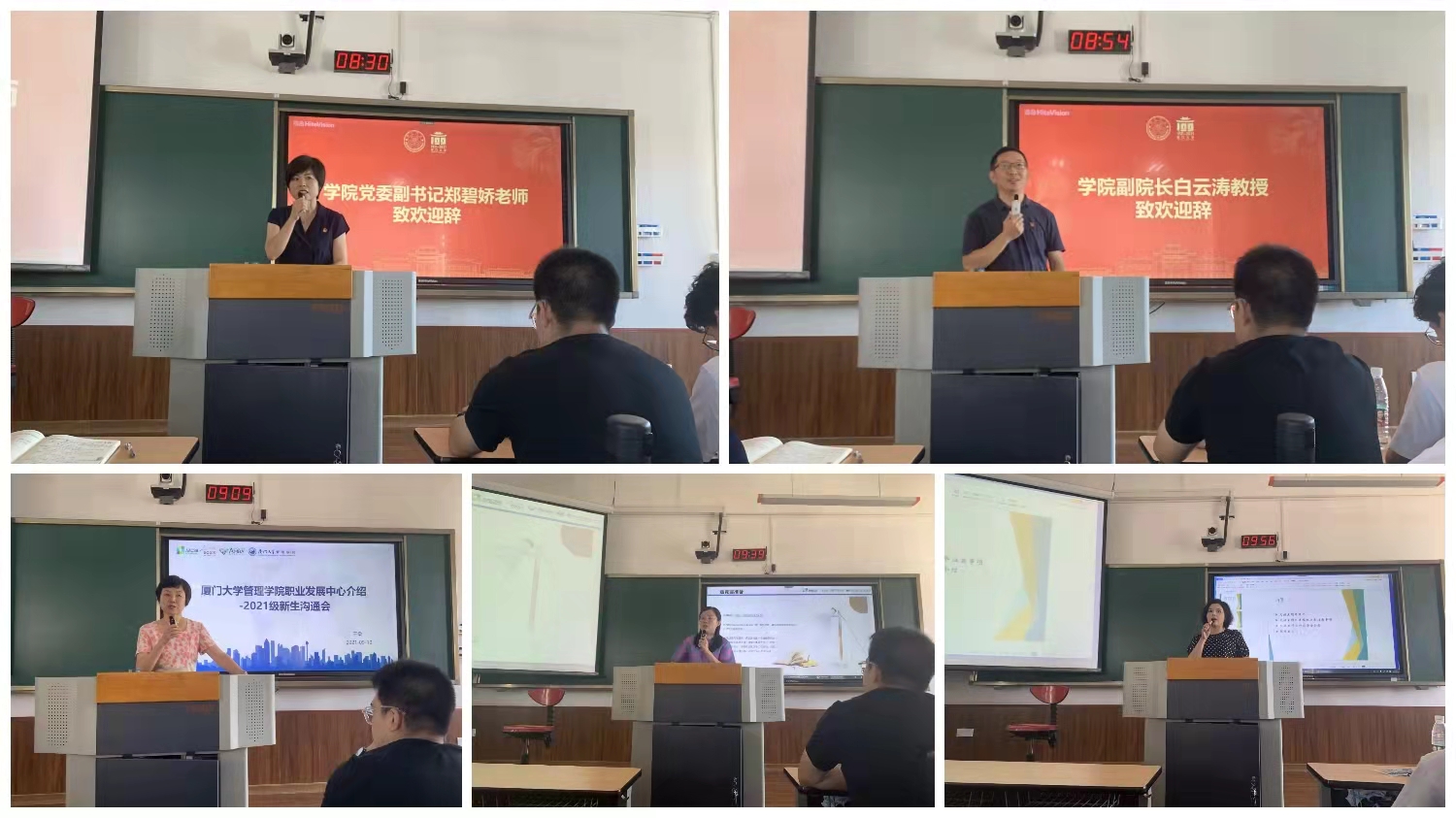9月10日上午,学院在南强二503举行新生见面会。见面会上,首先由学院党委副书记郑碧娇老师致欢迎辞,她向同学们娓娓道来厦门大学的光荣历史和深厚文化底蕴,着重阐述了“厦大之美”让新生们对充分挖掘“厦大之美”产生了浓厚的兴趣;接着,管理学院副院长白云涛老师表达了对管理学院全体本科新生的热烈欢迎,并以仁厚包容的师者情怀和幽默风趣的语言向同学们介绍了管理学院的光辉发展历程,并对同学们提出了殷殷期盼;紧接着,学院职业发展中心王燊老师、教学部门陈书芸老师、外事办黄小明老师分别对与学生紧密联系的工作做了介绍,加速同学们对学院的了解;最后,辅导员黄劲夫老师也表达了对同学们的热烈欢迎,并对校规校纪、安全、新环境适应、防诈骗等新生常碰见的问题做了强调提醒。