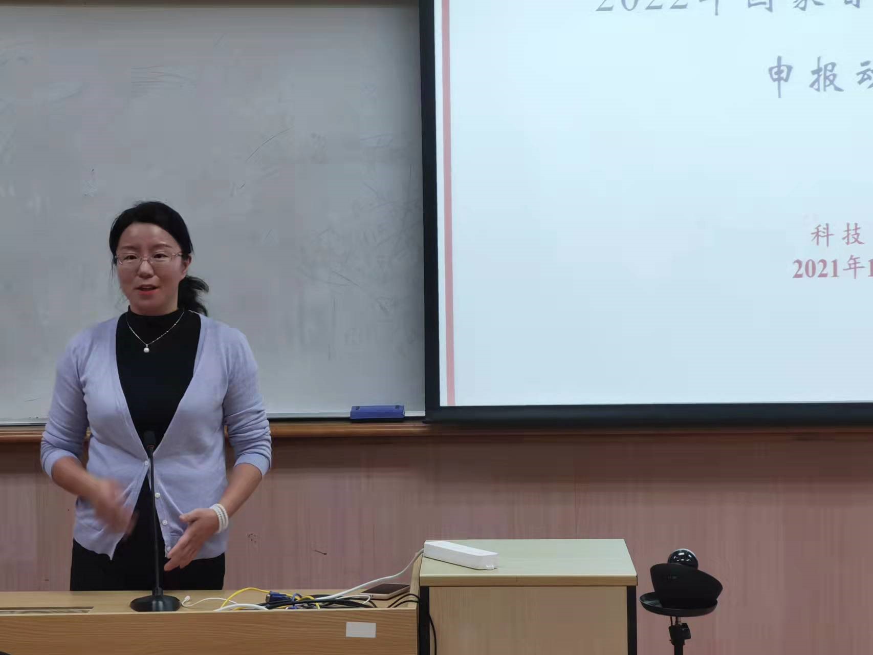 科技处副处长纪荣嵘教授结合个人成长、研究背景对自己申请国家自然科学基金项目的经历同参会教师进行了交流,对年轻教师未来的科研规划提出了宝贵建议。李荔敏科长介绍了“十三五”期间国家自然科学基金项目各学部和各类型项目申报、立项的总体情况,并从国基金的评审改革、国基金申报的常见问题等多方面进行了解读,并结合自身的经验体会,同大家详细交流了国基金申请书撰写的要点和技巧,为大家撰写高质量的申请书提供了指导。社科处处长高和荣教授以国家社科基金项目及教育部人文社科项目评审人的评审经验,分享了国家社科基金项目和教育部人文社科项目的选题要求、选题要点、选题表述等问题。他建议申报教师要深入研究近3-5年获批项目选题、历年选题指南和当年申报公告,透彻把握选题要求、选题特征和申报要求。