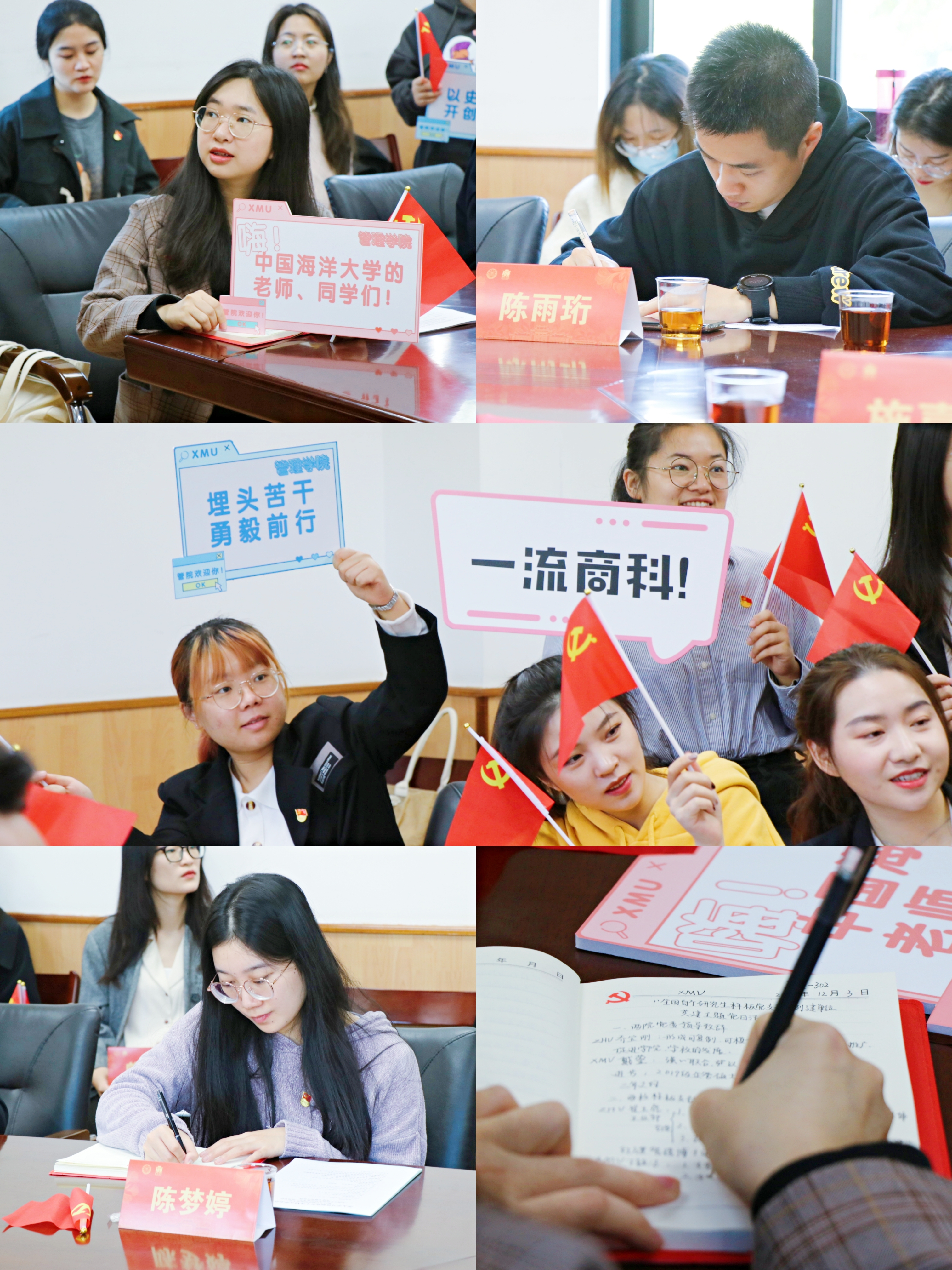 在干货满满的公报学习之后,与会党员畅谈学习心得。中国海洋大学管理学院红旗智援博士团创始人、全国大学生年度人物获得者马贝结合博士团对革命老区和贫困地区帮扶情况,分享其初衷与感想,深刻诠释青年人应“有理想、有本领、有担当”的具体内涵;博士团秘书长廖吉喆则结合博士团在脱贫攻坚与乡村振兴有效衔接上的实践,表示博士团将继续在党支部的引领下,充分运用学科优势和社会政企资源,将各项业务工作做牢、做实。厦门大学管理学院2019级硕士生方舟晟则从如何做好创新角度切入,号召研究生同学们将论文写在祖国大地上。