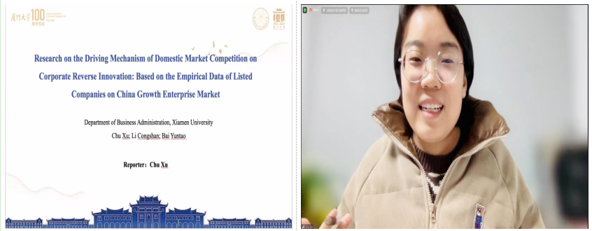 厦门大学管理学院褚旭博士带来了Research on the Driving Mechanism of Domestic Market Competition on Corporate Reverse Innovation: Based on the Empirical Data of Listed Companies on China's Growth Enterprise Market。文章以2009~2019年中国创业板上市公司为样本,基于本土市场竞争视角探究了中国企业逆向创新的战略选择和决策边界。结果显示:本土市场竞争能够激发企业逃离竞争的意愿并为其提供学习机会,最终提升企业的逆向创新水平。研究结论证实了中国本土激烈的市场竞争在企业国际化行为中发挥的重要作用,为中国“双循环”背景下的内循环赋能提供理论依据,并指导中国创业板上市公司的逆向创新决策。