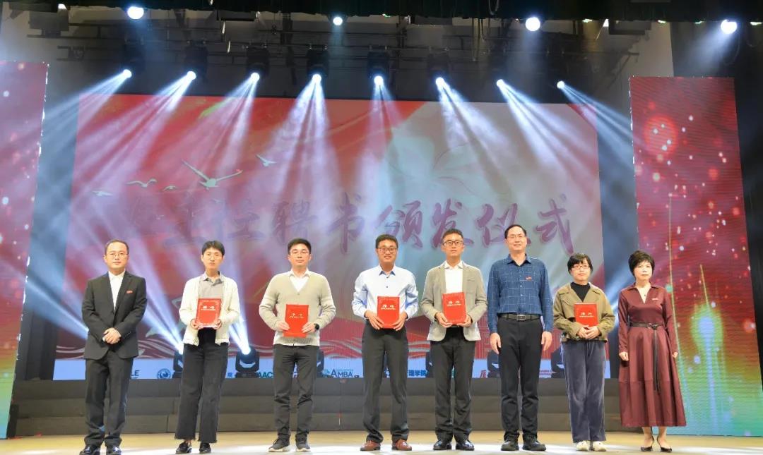 与往年不同,今年的迎新晚会还新增了特别的新老教师交接仪式。今年,我院会计学系陈少华教授、管理科学系刘震宇教授、管理科学系孟力教授光荣退休。在荣休仪式上,李建发、邱七星、吴超鹏上台为三位老师献花,感激他们为学术、育人做出面的贡献。紧接着,三位荣休教授同学院党政领导、教师代表为徐斌等16位新加入管理学院、财务管理与会计研究院的青年教师佩戴校徽、赠送《厦门大学百年校史》书籍,期待他们向教学科研、育才育人的工作中激发新的活力。管理学院本科生班主任聘任仪式随后举行,为共同做好人才培养工作,学院为新入学的382名本科新生配备了本科生班主任,吴超鹏、郑碧娇、戴蓥为班主任颁发聘书。新老教师交接仪式结束后,迎新晚会正式开始。