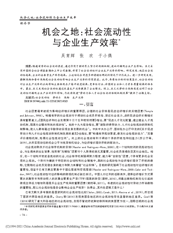 我院财务学系吴育辉教授、2019级财务学专业博士研究生张欢和财务管理与会计研究院于小偶助理教授合作撰写的学术论文《机会之地:社会流动性与企业生产效率》在《管理世界》2021年第12期发表。