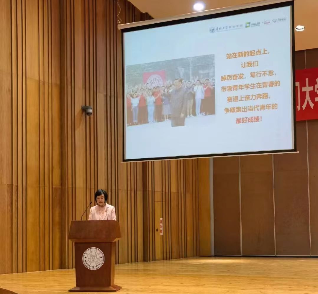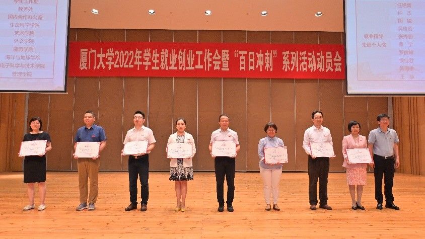 2022年4月28日下午,厦门大学2022年学生就业创业工作会暨“百日冲刺”系列活动动员会在科学艺术中心音乐厅举办,校党委书记张荣、校长张宗益等校领导出席会议。校党委原常务副书记、管理学院院长李建发,管理学院党委书记邱七星,管理学院党委副书记郑碧娇、戴蓥和全体辅导员参加会议。