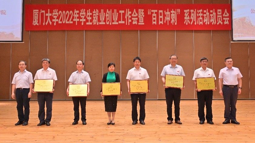 管理学院获评厦门大学2021年学生就业创业工作先进单位(左二邱七星代表学院领奖))