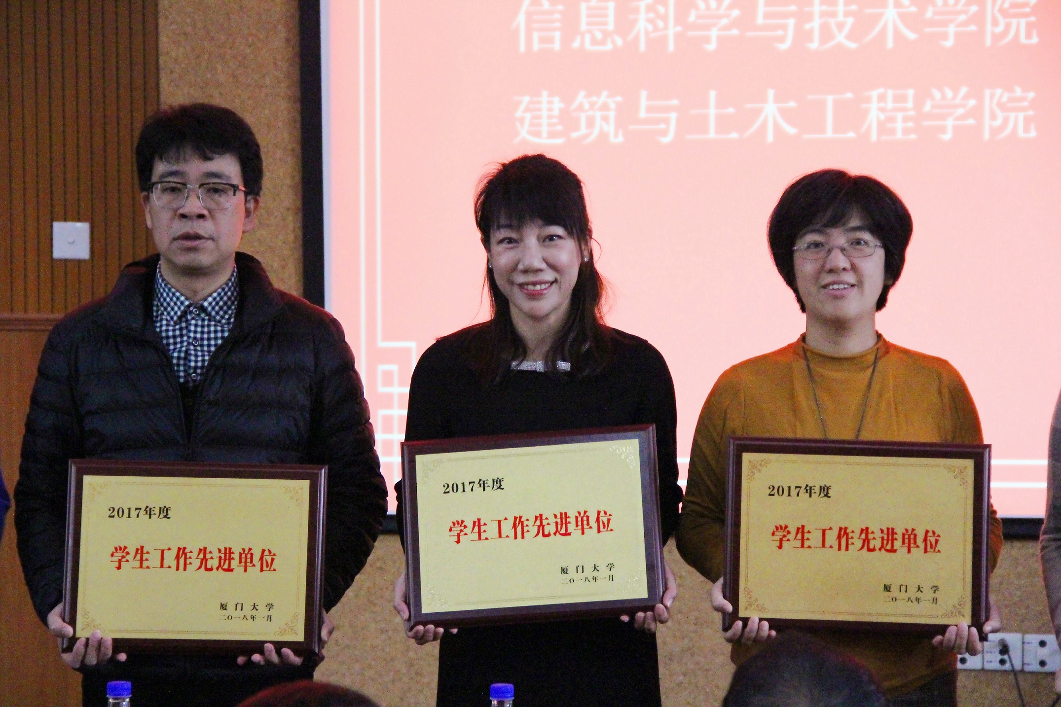 1月19日至20日,学校召开2017年度学生工作总结表彰大会。校党委副书记林东伟,校关工委主任陈力文,校长助理赵铁,副校级领导邓朝晖,以及组织部、宣传部、统战部、保卫部(处)、党校、招生办、翔安校区党工委、后勤集团等部门、陆军驻厦门大学选培办、马克思主义学院等相关负责部门同志,各学院、研究院、教学部分管学生工作的负责同志,全体专职辅导员,以及学生工作部(处)、校团委的全体工作人员参加了会议。