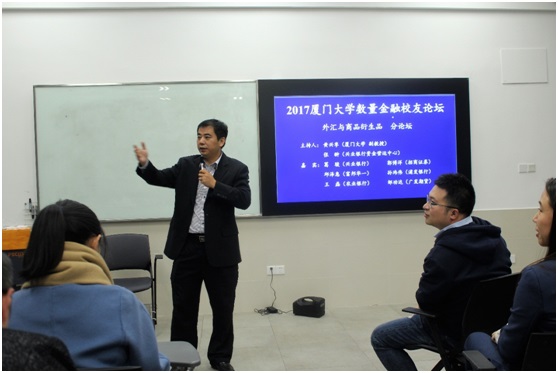 在厦门大学财务学系黄兴孪副教授和兴业银行资金营运中心张翀校友共同主持的“外汇与商品衍生品”分论坛上,兴业银行资金营运中心葛骏校友、招商证券衍生投资部郭博洋校友、浦发银行金融市场部孙玮伟校友、富邦华一银行金融市场部副总经理邱泽惠女士、中国农业银行金融市场部王磊校友、广发期货常务副总经理邹功达校友等嘉宾先后发言,围绕“外汇与商品衍生品”这一主题,就新一代外汇交易平台、豆粕期权市场特征与机会、人民币汇率形成机制变化、台湾市场人民币TRF(Target Redemption Forward)的体会、外汇资产隐含相关性和跨国资产配置、衍生品市场与功能等进行深入交流和热烈讨论。嘉宾们分享了自己参与外汇衍生品市场、商品衍生品市场的观察、心得与体会。