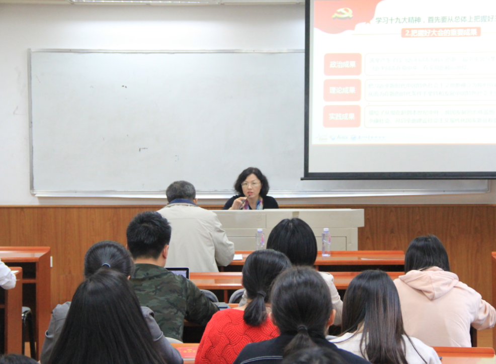 12月4日下午,管理学院院部教工党支部迎来本月首场“固定党日+”活动。活动由支部书记、退休老党员黄定基主持,学院党委陈雪玲书记作为主讲嘉宾为院部教工党支部的全体党员作了《习近平新时代中国特色社会主义思想的精神实质和丰富内涵——学习领会党的十九大精神》的主题讲座。讲座围绕“党的十九大精神”,分别从深入学习贯彻习近平新时代中国特色社会主义思想、习近平新时代中国特色社会主义思想的重大意义、习近平新时代中国特色社会主义思想的丰富内涵、坚持和发展中国特色社会主义的基本方略等四个方面深度解读了新时代下党的重大理论创新的最新成果。