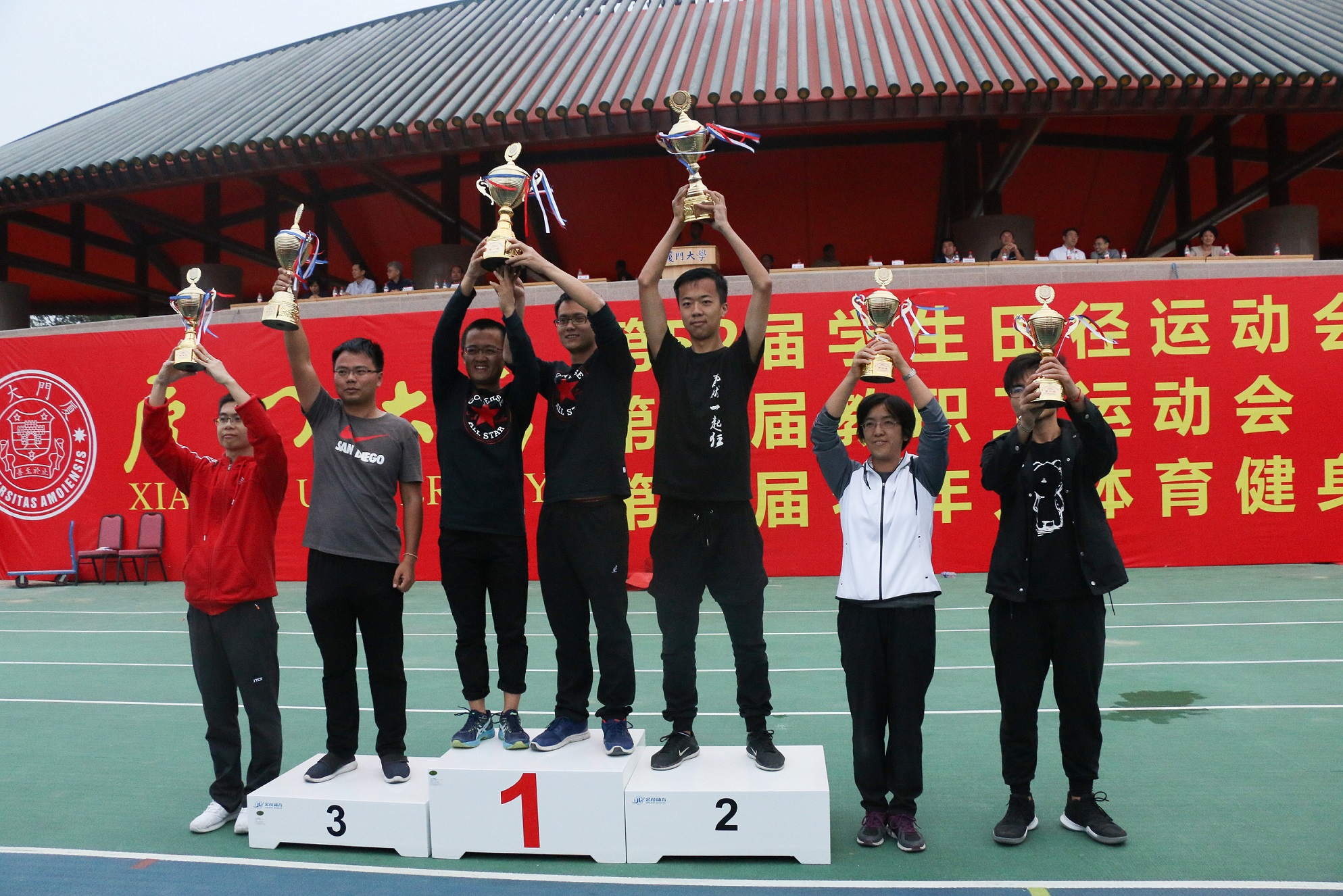 11月4日下午17时许,厦门大学第52届学生田径运动会闭幕式在思明校区演武场举行。闭幕式上,校党委副书记、副校长李建发为本次运动会获奖的团体颁奖,并宣布运动会闭幕。夕阳的余晖中,本次运动会圆满落下帷幕。在本届运动会中,每一位运动员都用拼搏诠释自己的青春梦想,管理学院也在本届运动会中创造了新的辉煌。