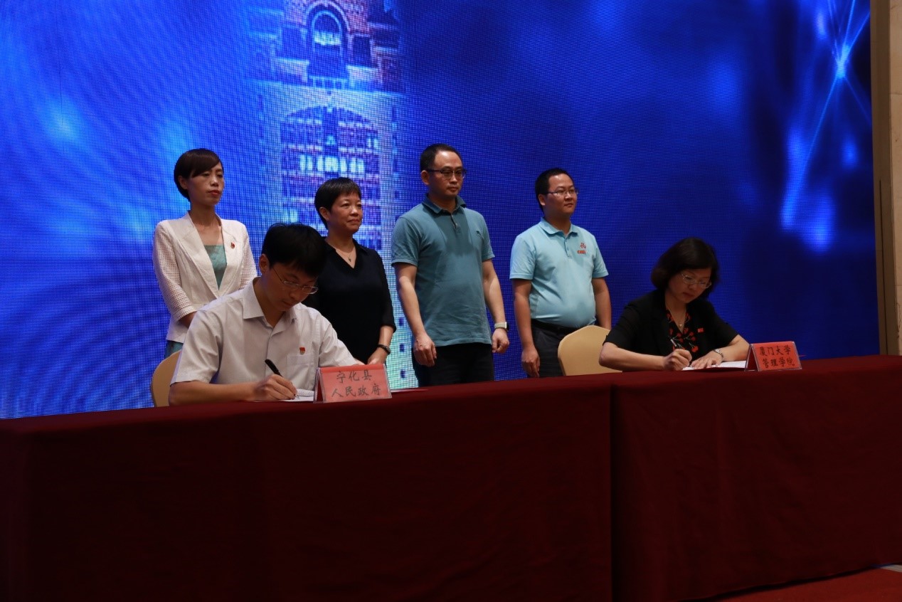 16日下午,我校校友、宁化县副县长邵东珂主持召开校地战略合作座谈会。支部一行和宁化县委组织部、宣传部、政府办、财政局、教育局、商务局、旅游局、团县委等相关单位负责人参加座谈会。宁化县委常委、宣传部长郑丽萍代表县委、县政府对厦大管理学院陈雪玲书记一行表示热烈欢迎,并简要介绍了宁化县基本情况。她说,宁化与厦门大学一直有着十分密切的联系,学生实习实践基地的建设,对密切宁化与厦大的联系、加快推进校地合作、促进宁化经济社会发展具有重要意义,各企业将加强与管理学院的联系交流,抓住机遇,做大做强,实现共赢。郑丽萍表示,下一步,宁化县将与厦大管理学院在开展教育培训合作和课题研究交流上的深化合作,共同推进双方交流合作,加快人才培育,开创宁化与厦门大学管理学院合作的新局面。陈雪玲表示,宁化作为千年古县和革命老区,有着深厚的文化积淀和光荣的革命传统,此次调研中,切身感受到宁化社会各界凝心聚力、致力发展、积极创新创业的浓烈氛围,看到了宁化县城乡建设的崭新风貌,特别是电商领域的迅速发展给人留下深刻的印象。厦门大学作为植根于福建的综合性大学,服务社会、服务地方经济的发展是厦门大学义不容辞的责任。今后,管理学院愿与宁化在人才培训、课题研究等方面开展更为广泛的交流合作,发挥校地双方各自优势,打造高校学子电商实训基地和社会实践基地,强化区域经济发展的智库支持,实现合作双赢。