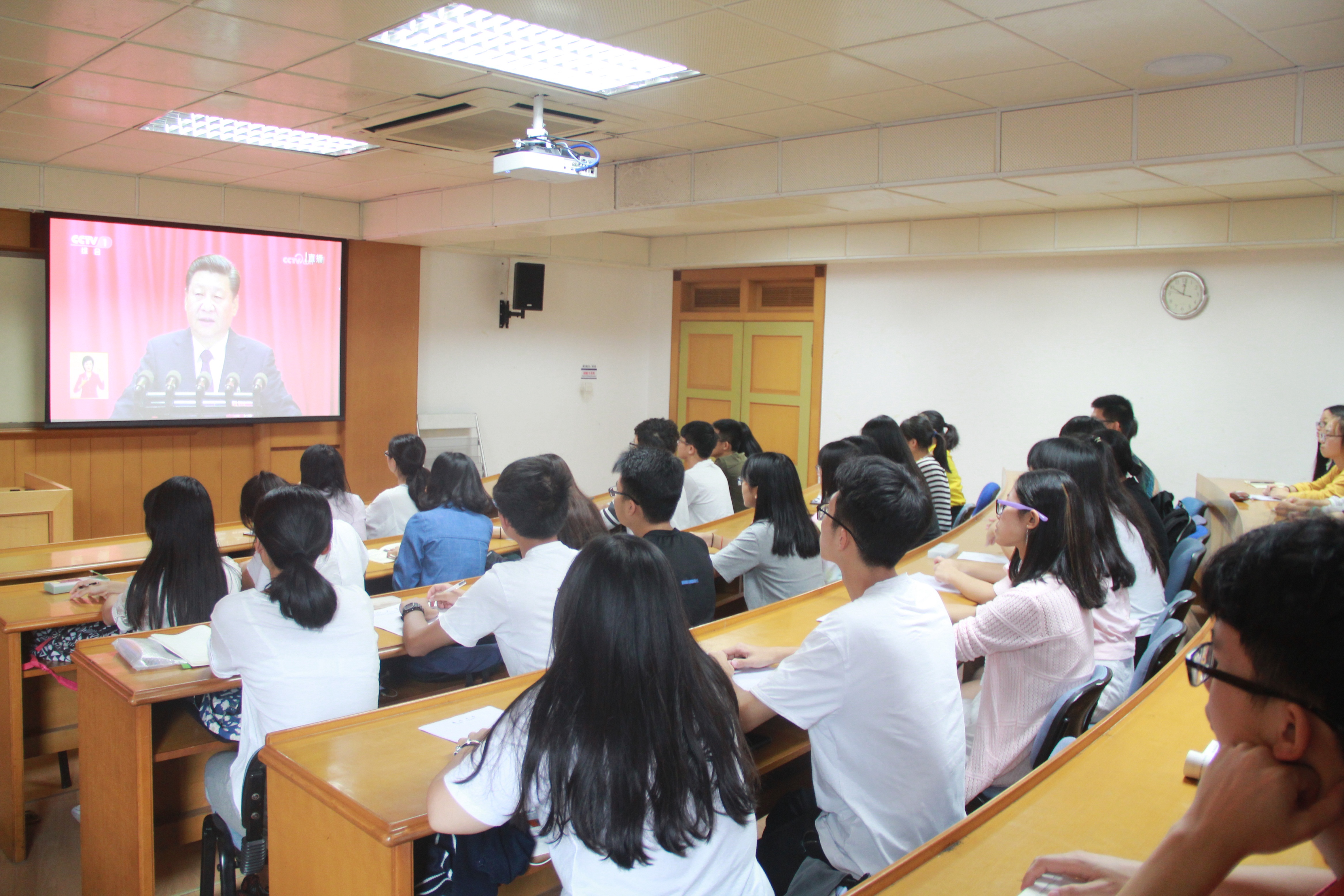 10月18日上午,管理学院保欣丽英楼各个教室、会议室座无虚席,“我们走中国特色社会主义道路,具有无比广阔的时代舞台,具有无比深厚的历史底蕴,具有无比强大的前进定力!”