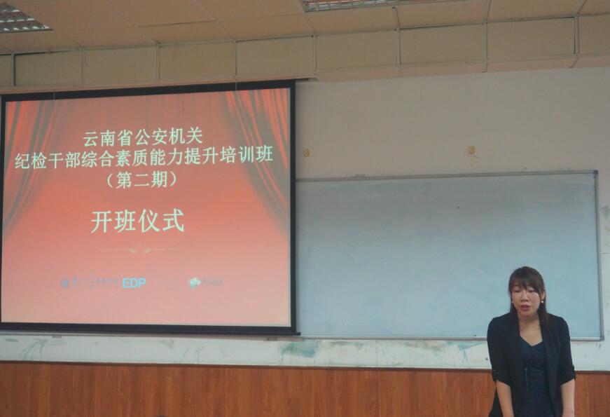 厦门大学管理学院党委副书记洪秋霞老师,驻云南省公安厅纪检组副组长申泽金同志出席开班仪式,仪式由厦门大学EDP中心项目主管潘夏莹老师主持。