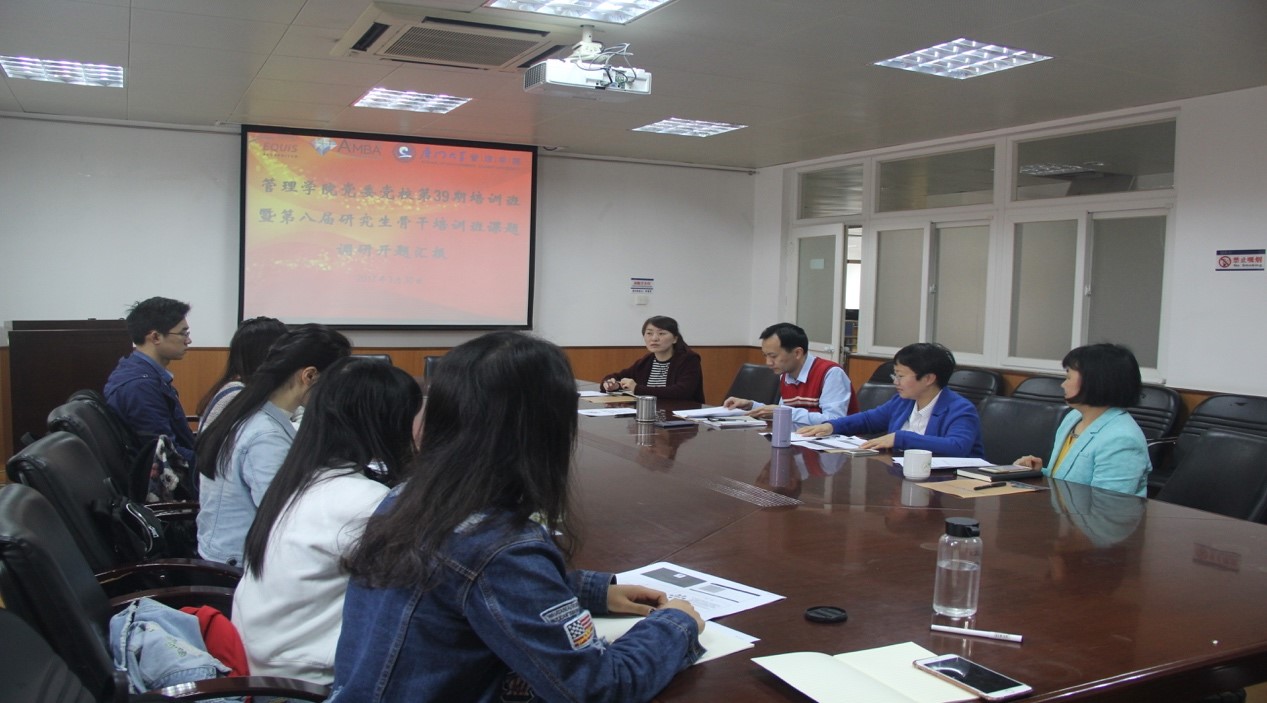 3月30日上午,管理学院第八届研究生干训班在嘉庚二(成枫楼)307会议室举行了课题调研开题报告会。学院第八届研究生干训班6个课题组进行了开题展示与答辩。校学生工作处杨玲副教授、管理学院党委副书记李峰、职业发展中心主任王燊、团委副书记周颖、辅导员揭上峰出席本次报告会并担任评委嘉宾。