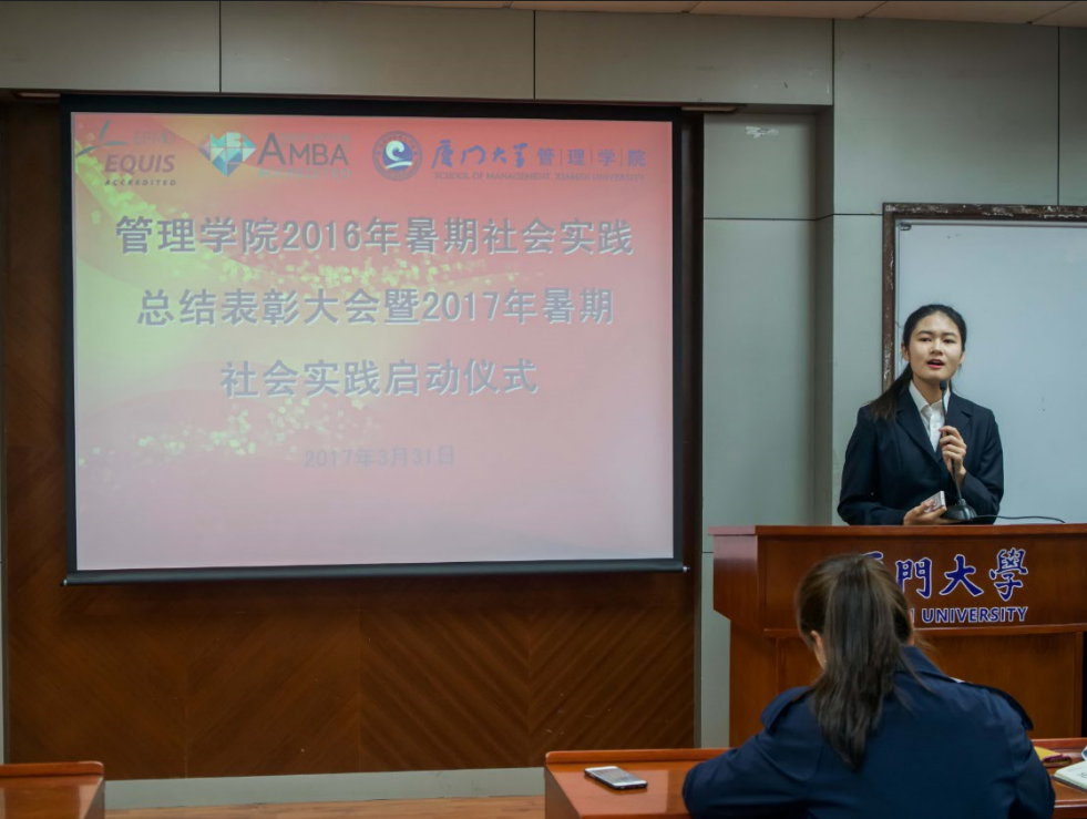 2017年3月31日下午16:30,2016年管理学院暑期社会总结实践表彰大会暨2017年暑期社会实际启动仪式在嘉庚二201如期举行。党委副书记洪秋霞老师以及学院团委老师、职业发展中心老师参加了大会。大会由王瑜同学主持。