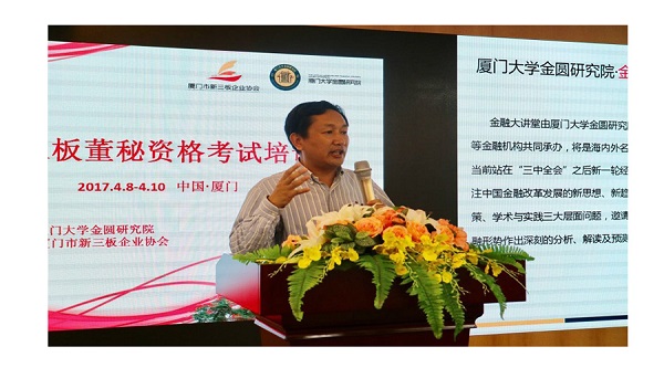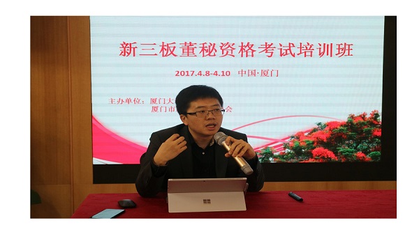 2017年4月8日至4月10日,新三板董秘资格考试培训班(第一期)在厦门两岸股权交易中心和厦门大学顺利举办,培训班为期3天,共有60人参加了培训。此次培训班旨在帮助参训董秘通过新三板董秘资格考试,规范挂牌公司董秘的任职及资格管理,提升公司治理和信息披露水平,课程受到学员们的热烈欢迎,取得了良好效果。