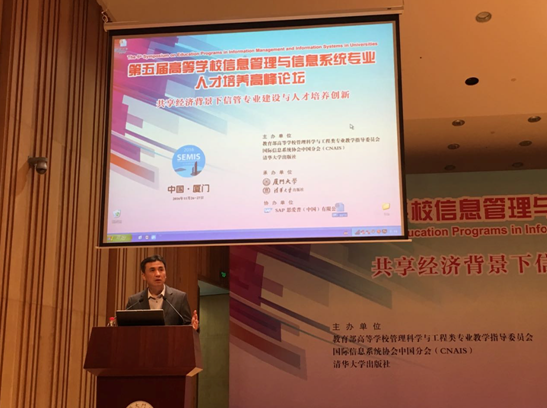 11月26-27日,由教育部高等学校管理科学与工程专业教学指导委员会、国际信息系统协会中国分会(CNAIS)和清华大学出版社主办,厦门大学和清华大学出版社共同承办的“第五届高等学校信息管理与信息系统专业人才培养高峰论坛”在我校隆重举行。此次论坛的主题是共享经济背景下信管专业建设与人才培养创新。来自全国上百所高校的300多名代表出席了论坛。