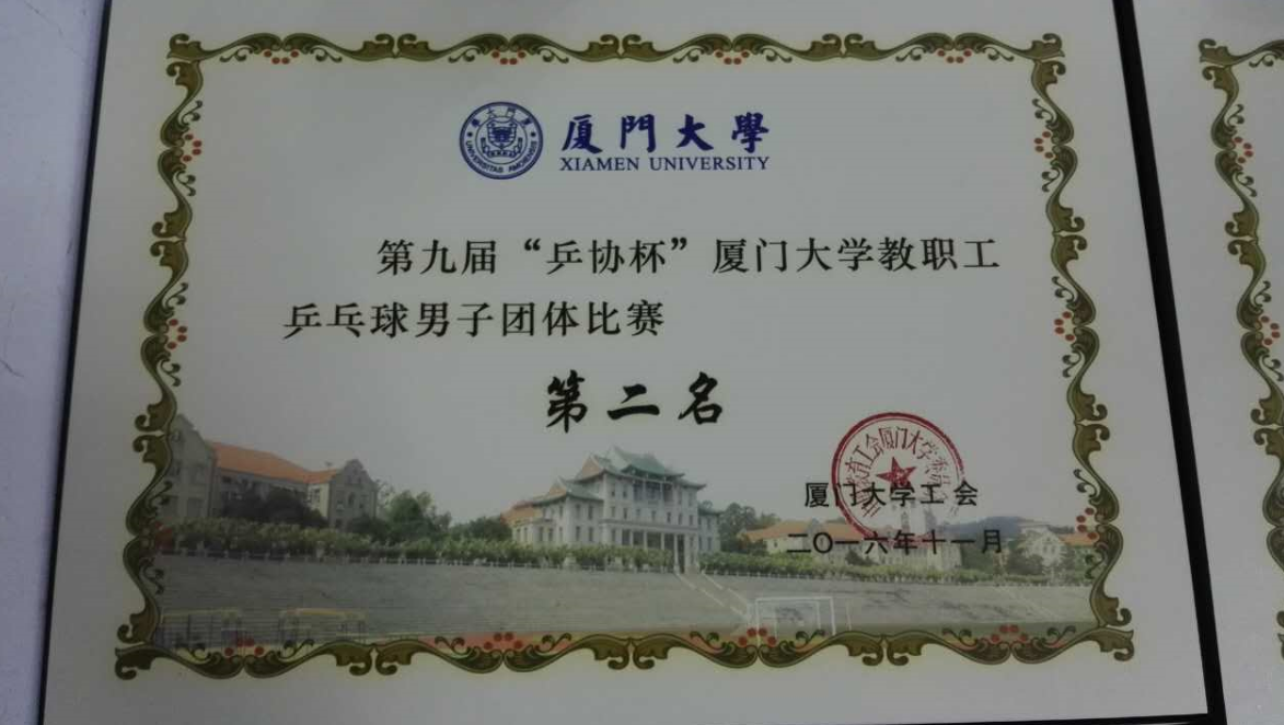 11月23日-25日,厦门大学第九届“乒协杯”教职工乒乓球团体赛在校教职工活动中心乒乓球场举行。比赛由校工会主办,共有来自全校各单位组成的18支教职工队伍参加了此次比赛。经过三天激情澎湃的拼搏,管理学院教工乒乓球队凭借自身的实力勇夺此次比赛的男子团体亚军,创造历史最佳纪录。
