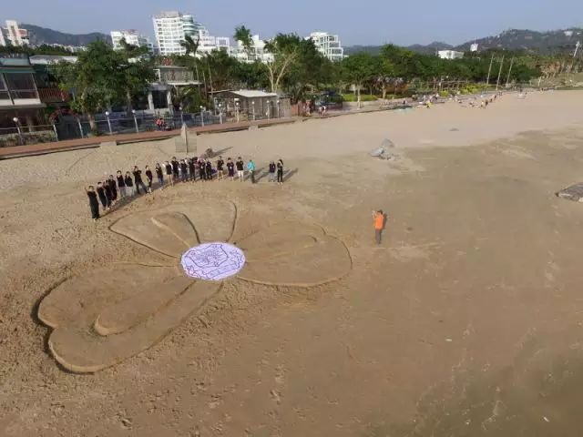 为期一天的返校活动,在洪老师的鼓励下开始了。校友们首先分成若干小组,在校园内开展一天的团队协作拓展活动。当天上午,校友们前后需要完成“妙笔回春”、“火眼金睛”、“同桌的你”、“睡在上铺的兄弟”等8个环节的任务,重温校园生活。接下来,大家在海边合作“千手观音”、“精雕细琢”等项目。最终,在全体同学的高效配合下,在柔软的沙滩上,筑起了直径长达9米的管理学院校友会会徽的图案,实属不易。
