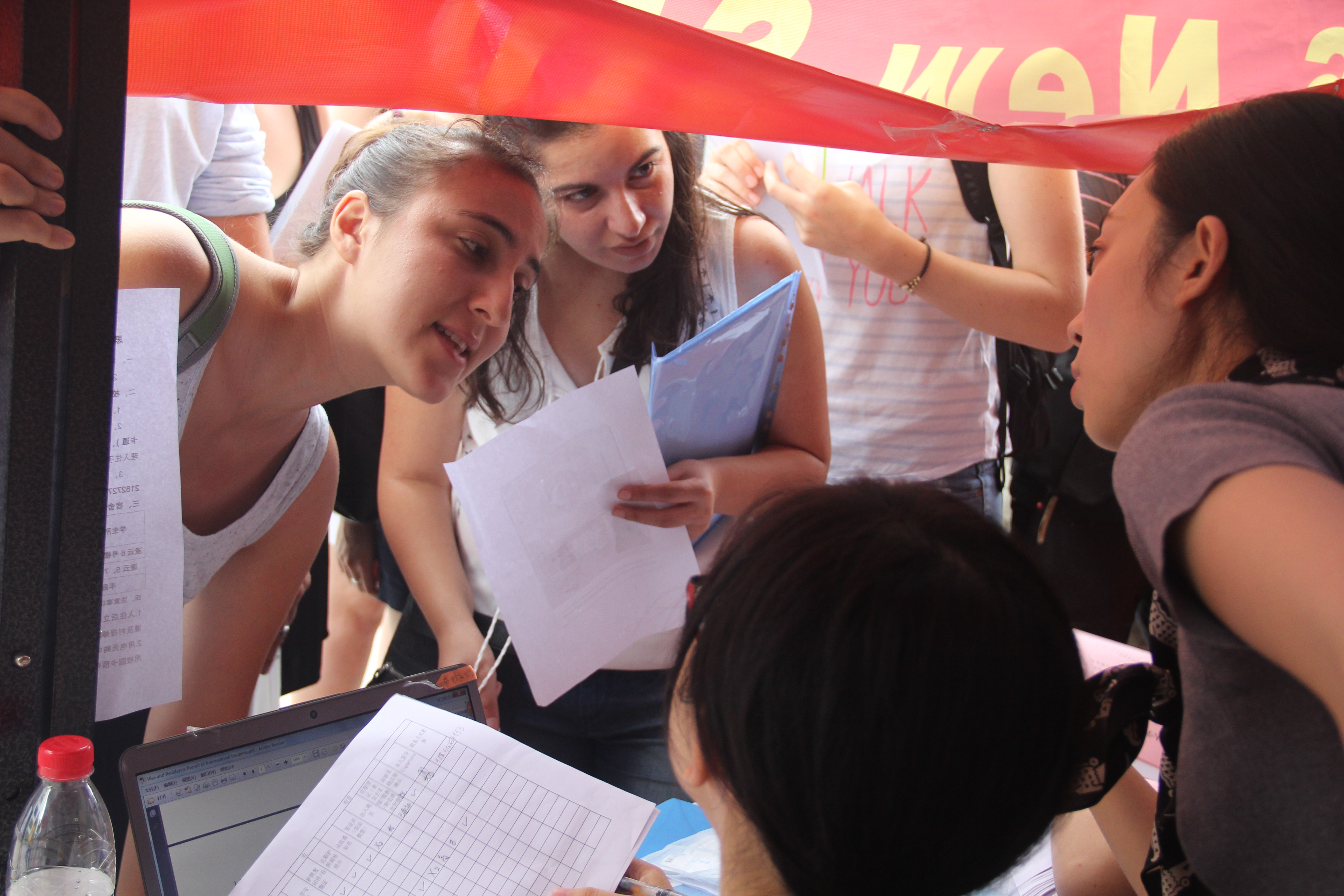 在本次迎新中,学生种类多、时间紧、任务重,学院充分发挥本、研联合的优势,统一指挥、高效行动。学生干部以及学生志愿者来自本、研学生,他们统一穿着醒目的亮黄色T恤,穿梭在迎新现场,是一道亮丽的风景线。此外,伴随着学校、学院走向国际化的脚步,学院的迎新工作也坚持国际化。从现场的每一句标语到海外生迎新志愿者的一对一服务,让来自海外的国际友人也能感受到学院的人文关怀。