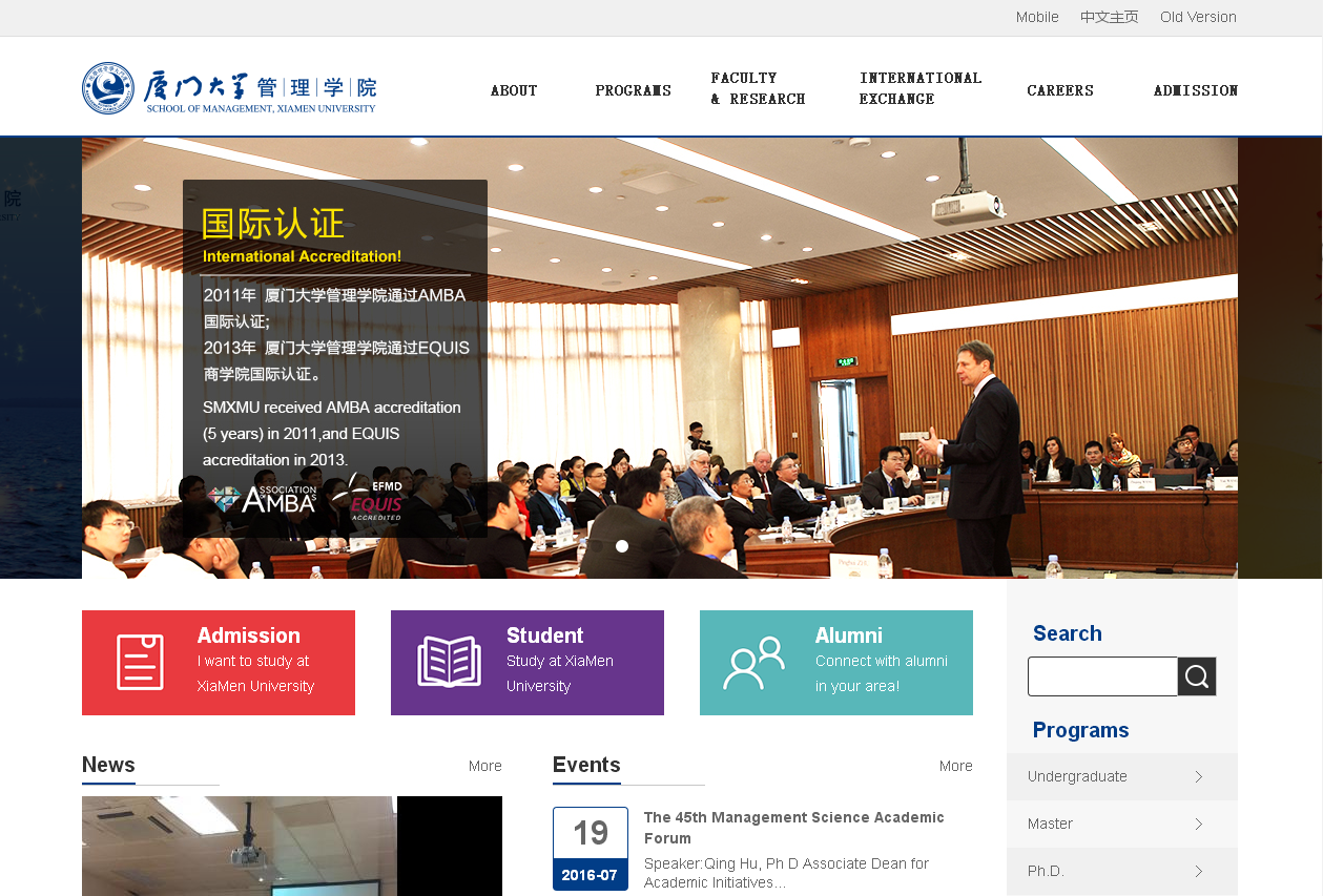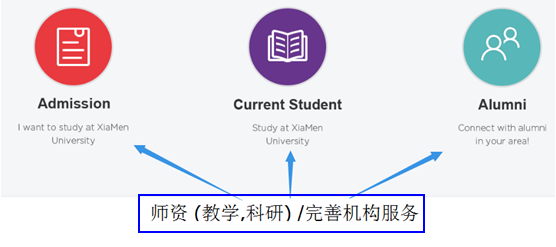 面向管理学院“潜在的学生”、“在校学生”和“校友”三方面的访问者提供信息服务。