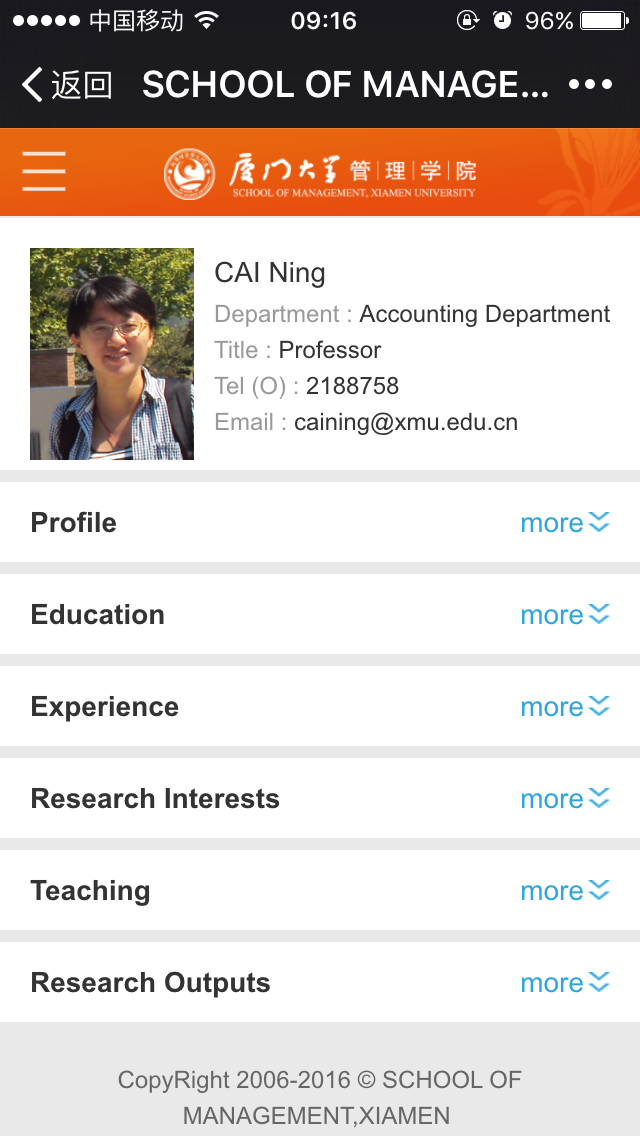 教师个人页面:(http://sm.xmu.edu.cn/keyan/TeacherWeb/Teacher_Details.aspx?User_ID=400)