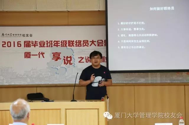 孟林明秘书长用风趣幽默的语言,向同学们简要概述厦门大学校友会、管理学院校友会的发展情况,阐述了校友会的概念,强调“校友会是校友之家”、“售后工作做好才是负责的学校”。特别指出管理学院校友工作在厦门大学众多学院中名列前茅,校友工作是一个长期的累积过程,管理学院校友会即是广大校友共同的家,我们会尽己所能为校友们营造“家”的氛围,让校友们感受到“家”的温暖,无论何时都能回来停靠的地方。