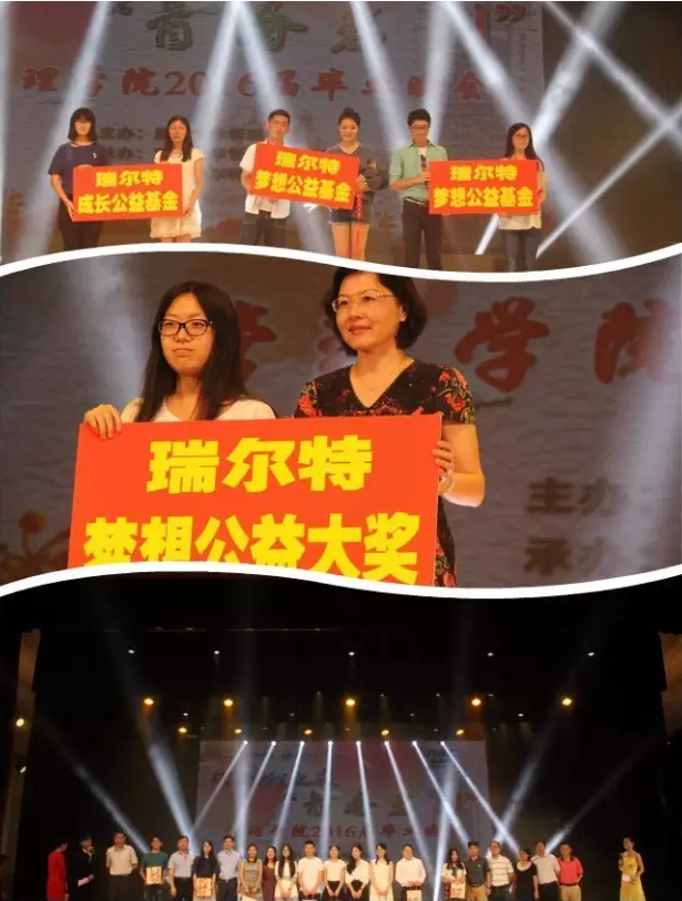 此外在晚会中场,厦门瑞尔特卫浴科技股份有限公司为管院同学提供了成长公益基金、梦想公益基金和梦想公益大奖,同时,学院还为毕业生代表赠送了毕业纪念礼品。