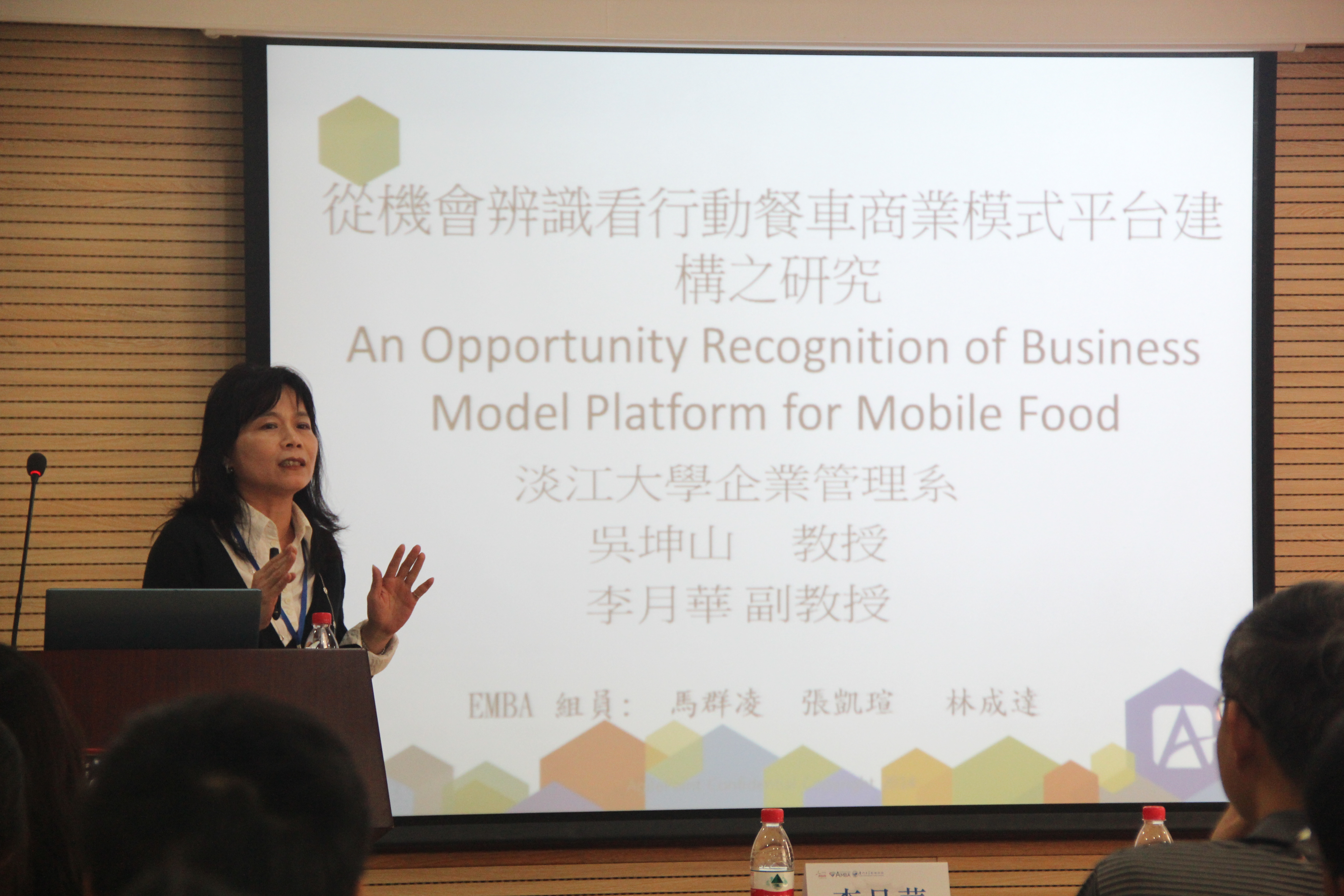 随后,由台湾淡江大学李月华副教授开展题为《从机会辨识看行动餐车商业模式平台建构》主题报告。李月华副教授就行动餐车在台湾的发展现状、问题阻力、运营模式、平台技术、生存挑战等多个角度论述了行动餐车的商业模式。主题报告后的互动问答环节,多位老师和同学就行动餐车的相关法律法规、食品安全保证、行业竞争等多个方面提出问题,李月华副教授都给予细心解答。