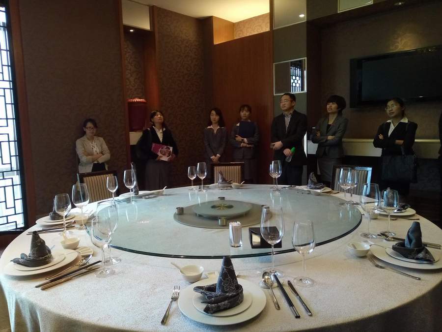 在乐怡吧,皇冠假日酒店的苏总经理——厦大校友、学长,跟同学们分享了关于未来的就业前景和关于酒店的职业规划,并且亲切的说“磐基假日酒店的大门永远向厦大学子敞开着”。参观的脚步来到了酒店四层餐厅,首先来到中餐厅,中餐厅大堂的中式风格设计非常具有视觉冲击力,在包间里,服务主管给同学们详细讲解了有关包间设计、装修风格,以及服务事项等工作内容和流程,同学们结合课程所学知识向主管请教了“怎样提高顾客的满意度?”“一个服务员摆台需要多长时间?”“口布折花有哪几种方式?”等感兴趣的问题。从中餐厅出来,我们走进了酒店的西餐/自助餐厅,在这里大家看到了来自各个国家的各种点心和食物。紧接着,大家的脚步迈入了皇冠假日酒店在业内最具竞争力的会议区,参观了各式规格的宴会厅和会议厅。等大家再次来到酒店的大堂,2个小时的参观行程在不知不觉中完成了,同学们热情地邀请酒店接待人员一起合影留念。酒店人资部经理Jane小姐真诚地欢迎大家多来交流,她说:“酒店再给你们提供机会的同时,你们也会给酒店提出新的想法、注入新的能量。”