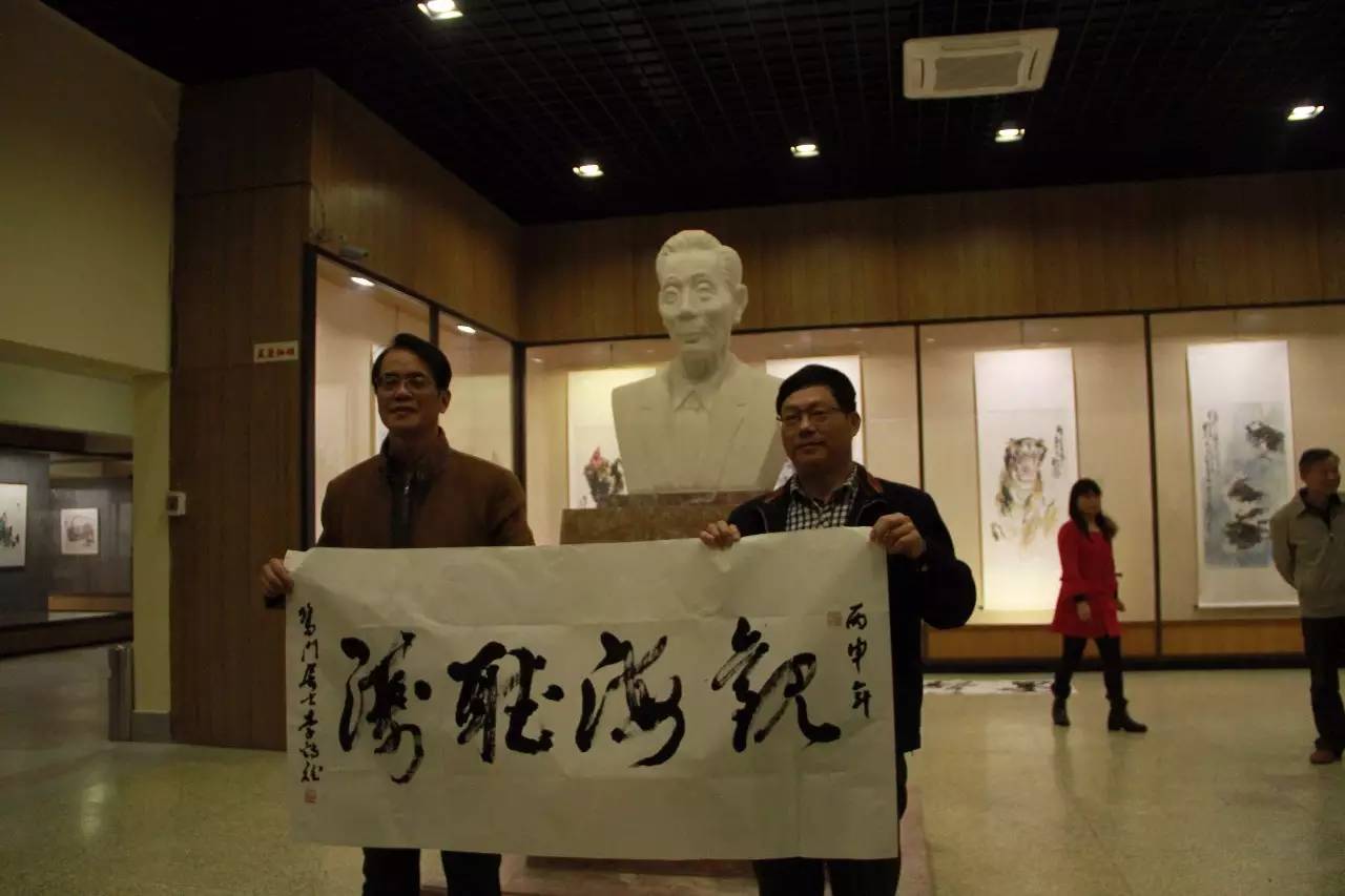 在第一任馆长、沈耀初儿子沈秋浓,诏安县文化广电体育局局长张弓以及中国书画家协会会员、诏安文化广电体育局主任科员江水木等人的陪同下,李老师带领大家参观沈耀初先生的美术作品,以实物的作品为参照,讲解书画鉴赏的方法,评析沈耀初老先生书画的力与美。在书画鉴赏中,不仅要看它的构图章法、线条墨色,还要看它背后的文化历史因素,感受作者要表达的意境。