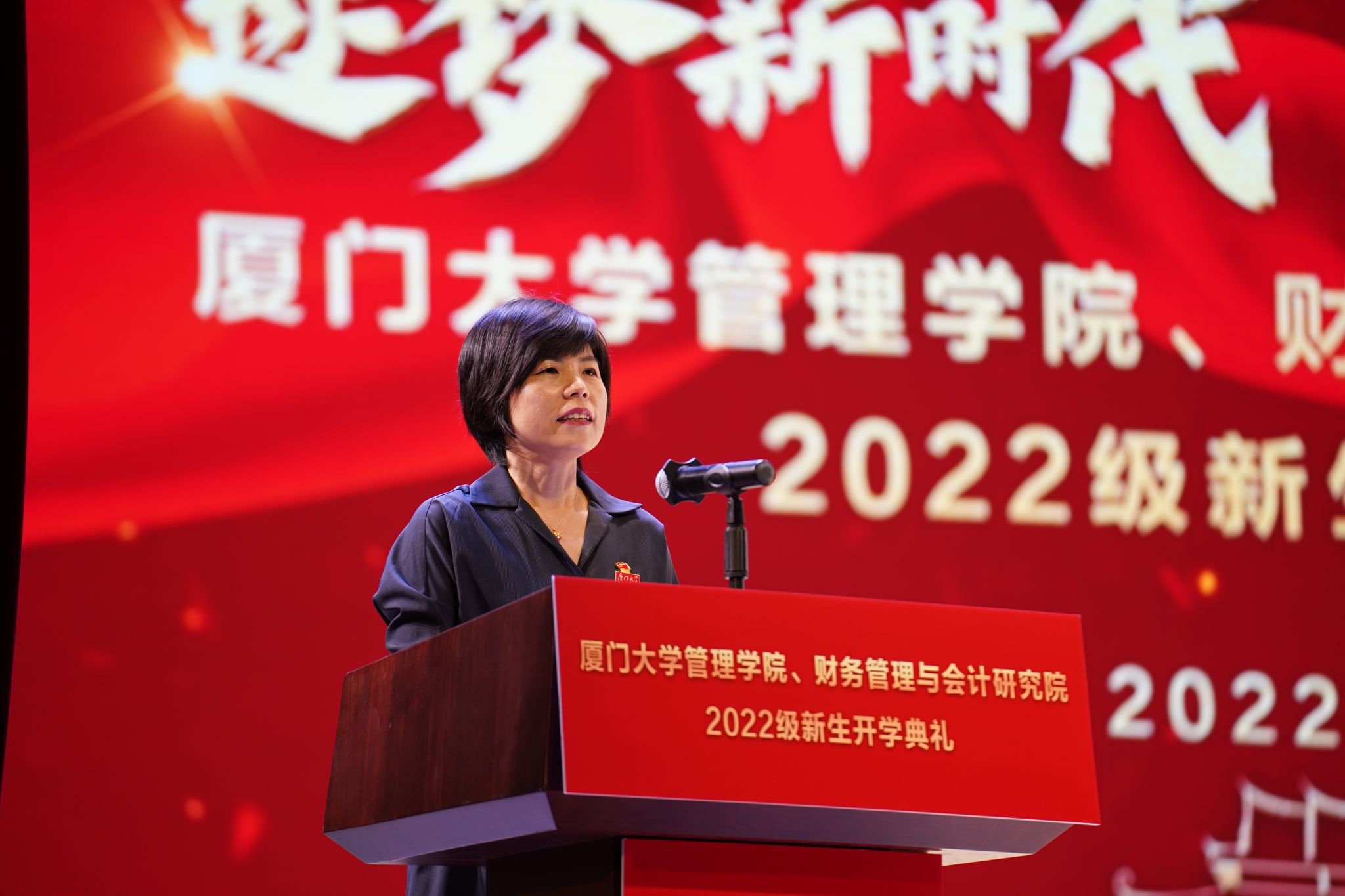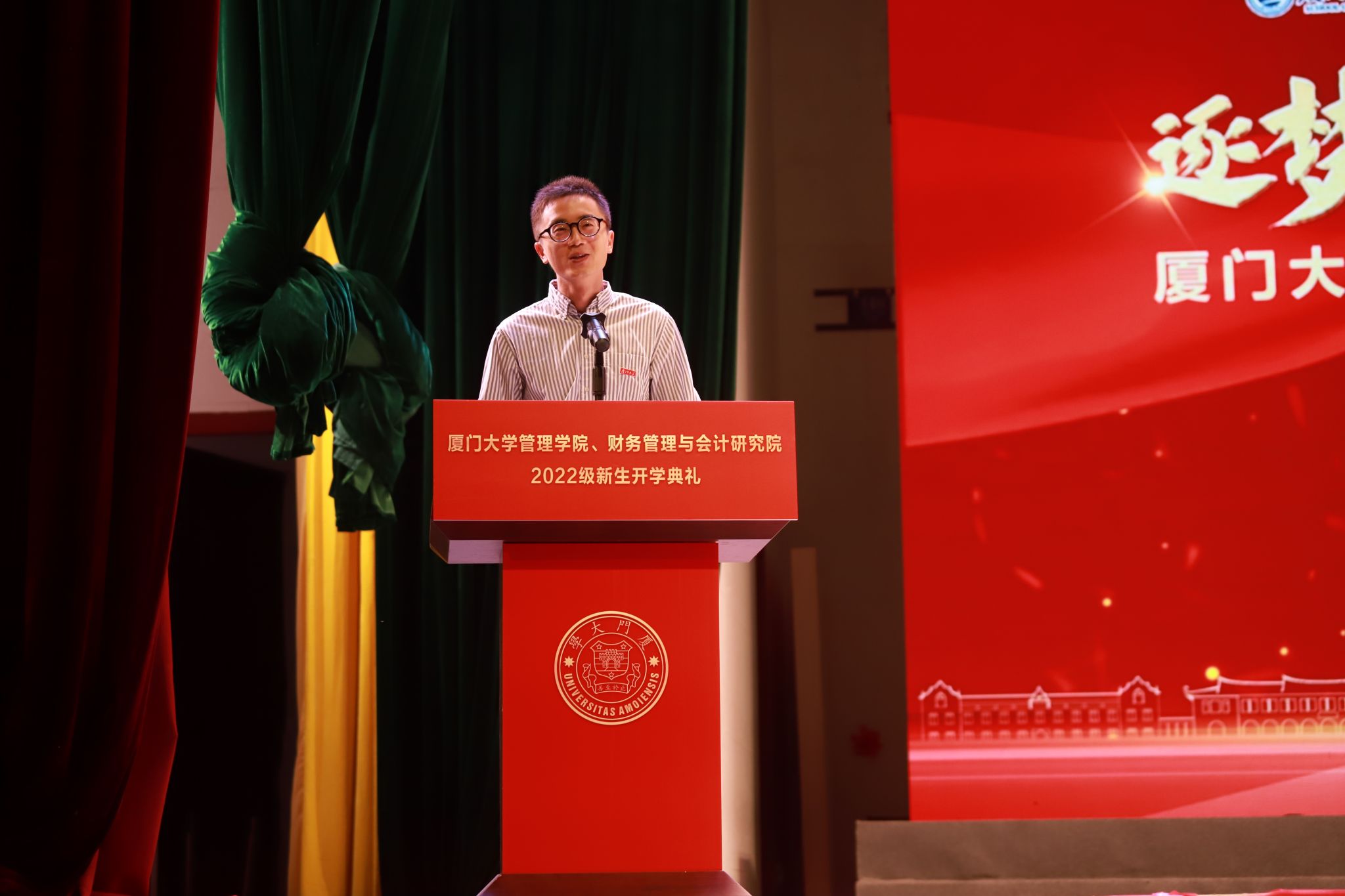 9月9日上午,厦门大学管理学院、财务管理与会计研究院2022级新生开学典礼在建南大会堂举行。校党委原常务副书记、管理学院院长李建发,院党委书记邱七星,副院长白云涛,财会院副院长胡金帅,各系所中心领导、新生班主任、辅导员、教师代表及2022级全体新生出席开学典礼。典礼由学院党委郑碧娇副书记主持。