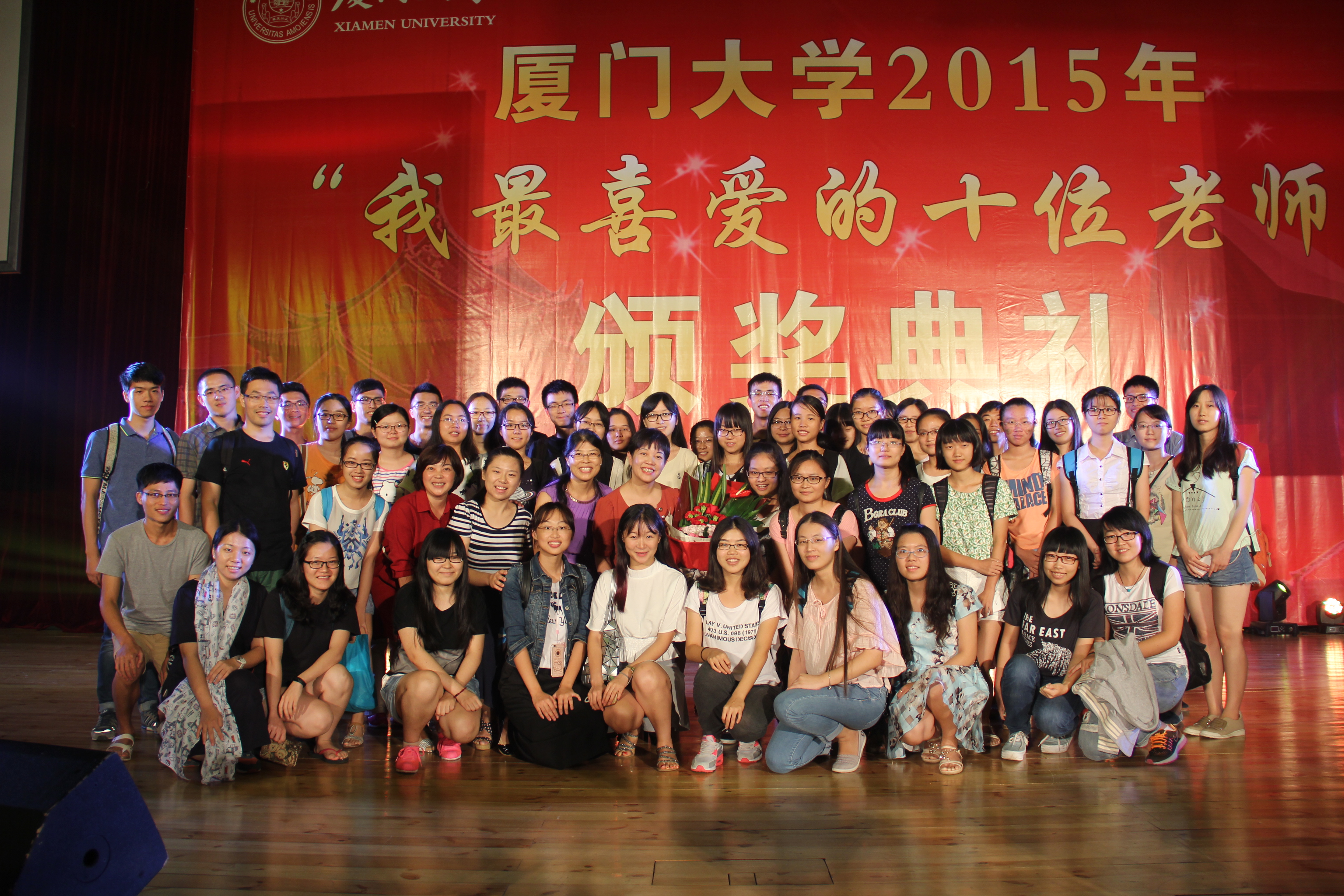 2015年9月17日晚19时30分,厦门大学2015年“我最喜爱的十位老师”颁奖典礼在科学艺术中心成功举行。评选中,我院的彭丽芳老师在众多优秀教师中脱颖而出,成为最受喜爱的十位教师之一。优雅、乐观、真诚、干练的她是每一届管院学子们心中最亲切的“彭妈妈”。