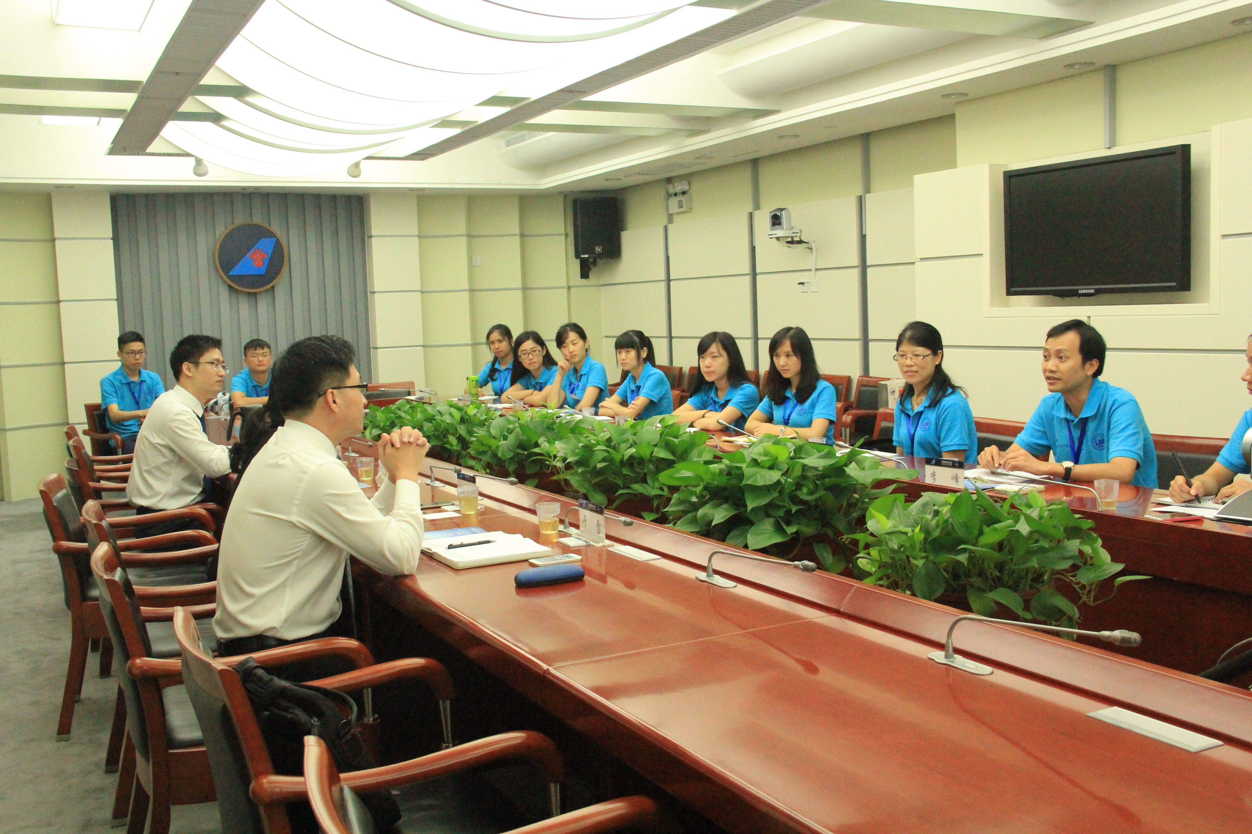 校友、南方航空股份有限公司人力资源部总经理何晓群,人力资源部副总经理于雷等热情接待了实践队一行。同时,人力资源部还精心安排了两位在南航工作的校友来参与交流座谈。