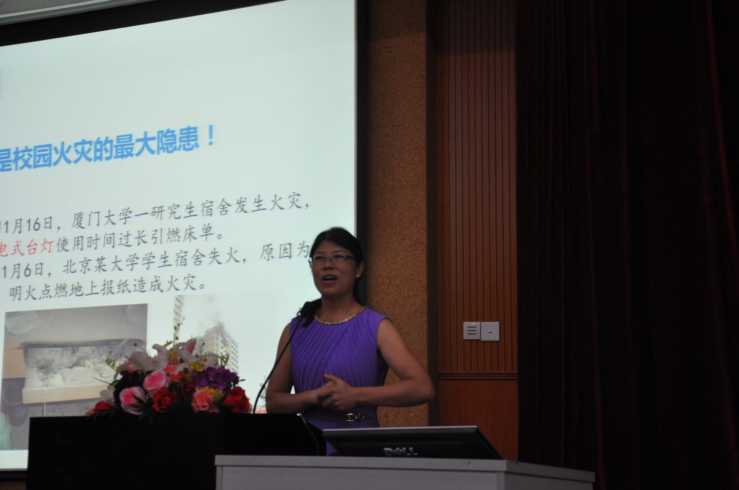 最后,蒋超杰老师做了关于研究生新生日常管理与规章教育的报告,她提醒新生们注意人身安全,防范诈骗活动,并向大家介绍了学院请假管理规定,奖学金和荣誉称号评定办法,以及卫生检查办法等日常规范制度。