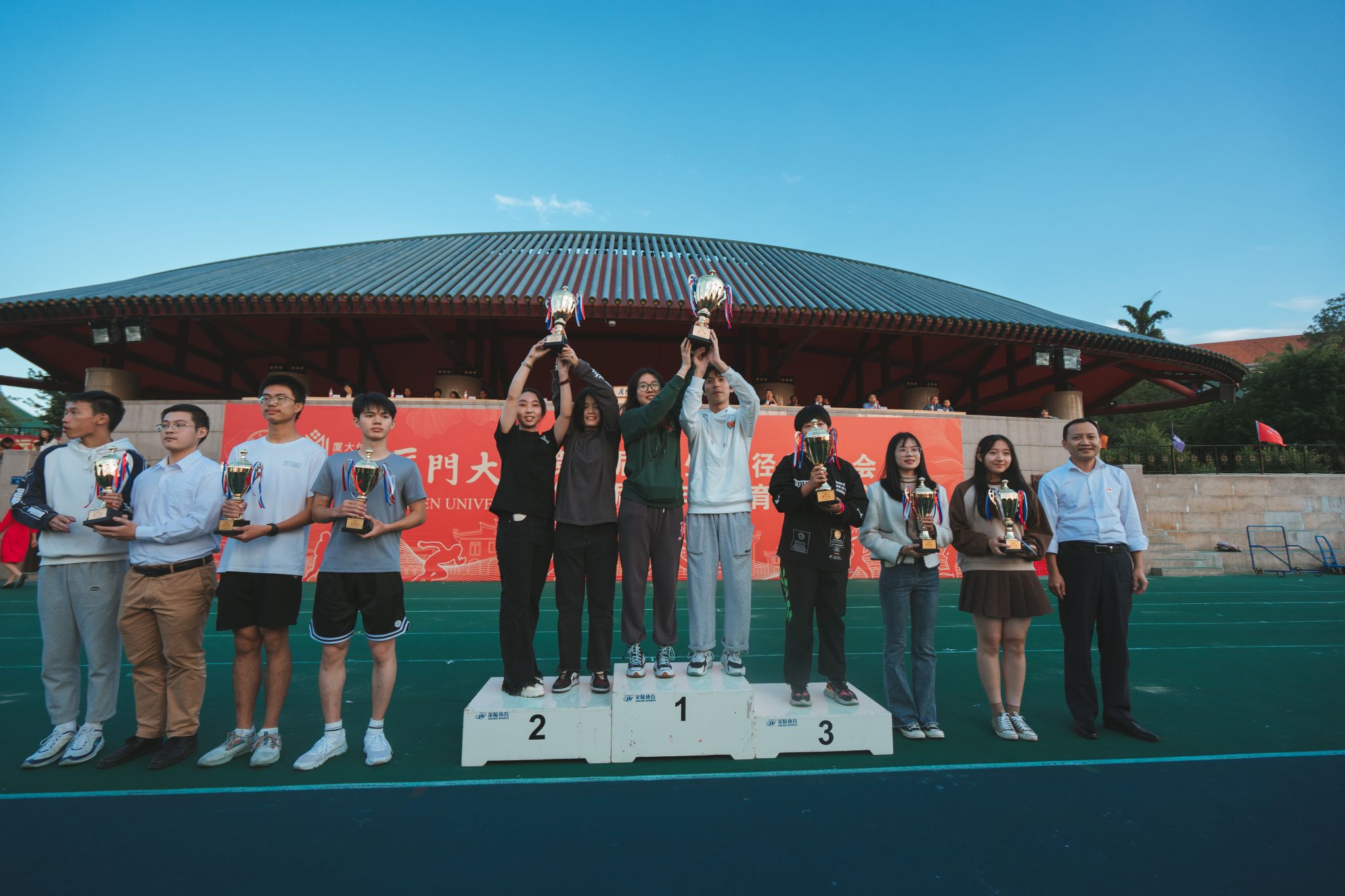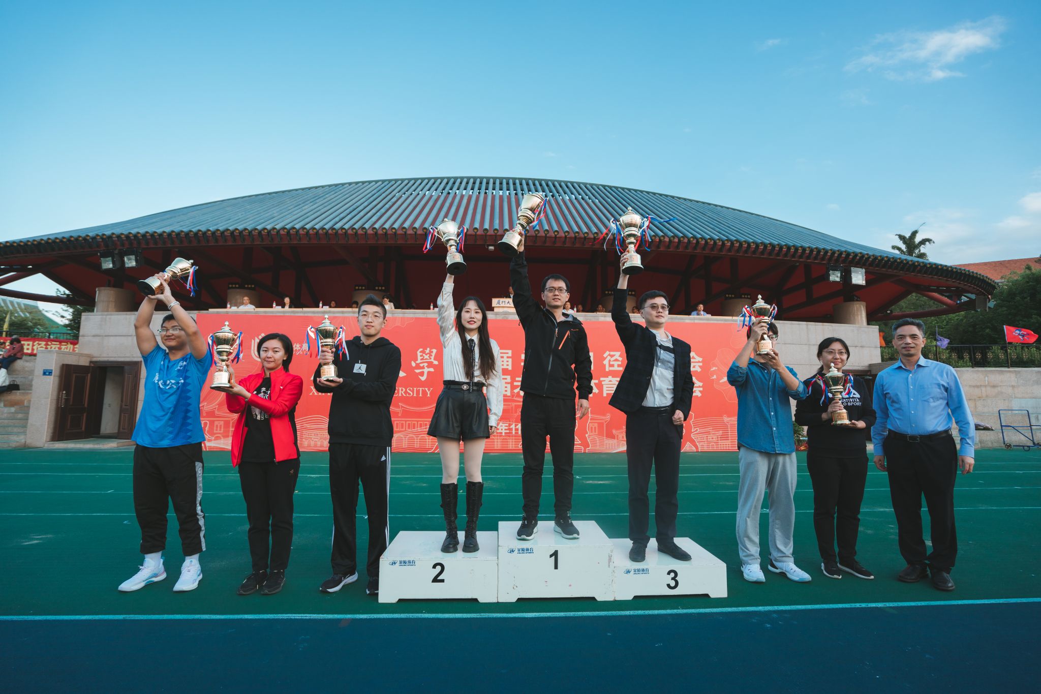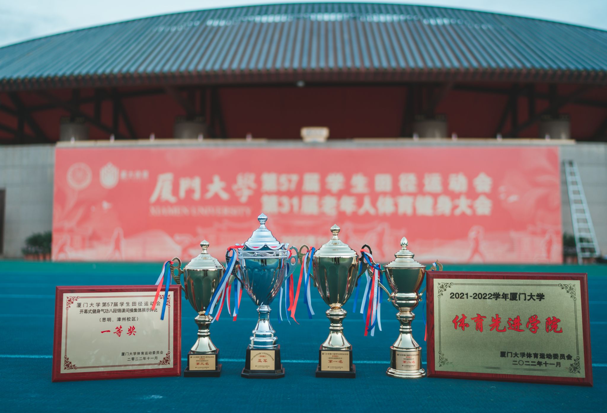 11月5日,厦门大学第57届学生田径运动会暨第31届老年人体育健身大会在思明校区演武场圆满闭幕。在本次运动会中,我院学生挥洒汗水、拼搏出彩,最终以本科生团体总分蝉联第一、研究生总分第三、学生团体总分第二、健身气功(学生八段锦)一等奖的好成绩圆满收官。学院以2021-2022年度体育总分排名第二的成绩荣获2021-2022年度“体育先进学院”、“体育竞赛总分亚军”的荣誉。再续往日荣光,更添崭新风采。