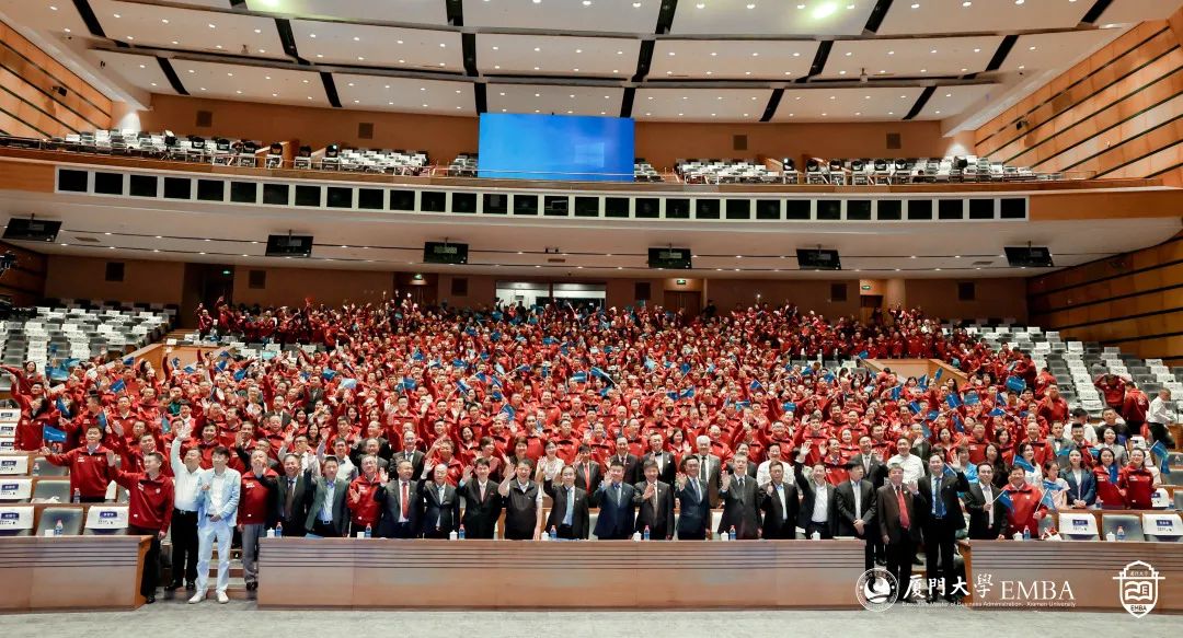 厦门大学校长张宗益教授,中国科学院院士、厦门大学原副校长、化学化工学院教授孙世刚,厦门大学原副校长、全国MBA教育指导委员会第1-4届原副主任委员、管理学院教授吴世农,厦门大学校长助理、学校办公室主任李智勇老师,第六届全国MBA教指委委员、哈工大经济与管理学院原院长叶强教授,厦门大学管理学院中国能源政策研究院院长林伯强教授,厦门大学学生党委工作部部长李峰老师,厦门大学研究生院副院长杨柳副教授,厦门大学招生办公室主任、公共事务学院党委书记刘艳杰老师,厦门大学校友总会秘书处秘书长张伟老师,厦门大学出版社社长郑文礼教授,以及厦门大学管理学院党委书记邱七星老师,管理学院常务副院长吴超鹏教授,管理学院副院长于李胜教授,管理学院党委副书记郑碧娇老师,管理学院党委副书记戴蓥老师,厦门大学管理学院EMBA中心主任李常青教授等领导和嘉宾出席大会,EMBA任课教授和论文指导老师:郑振龙、邹振东、何福龙、王龙雏、池国华、许庆欣、黄福才、屈文洲、李卫东、魏敏、詹虹、袁喜娜等,和现场800多位校友,及线上通过直播同步观礼的EMBA师生们,共同见证这历史性一刻。大会由管理学院常务副院长吴超鹏主持。