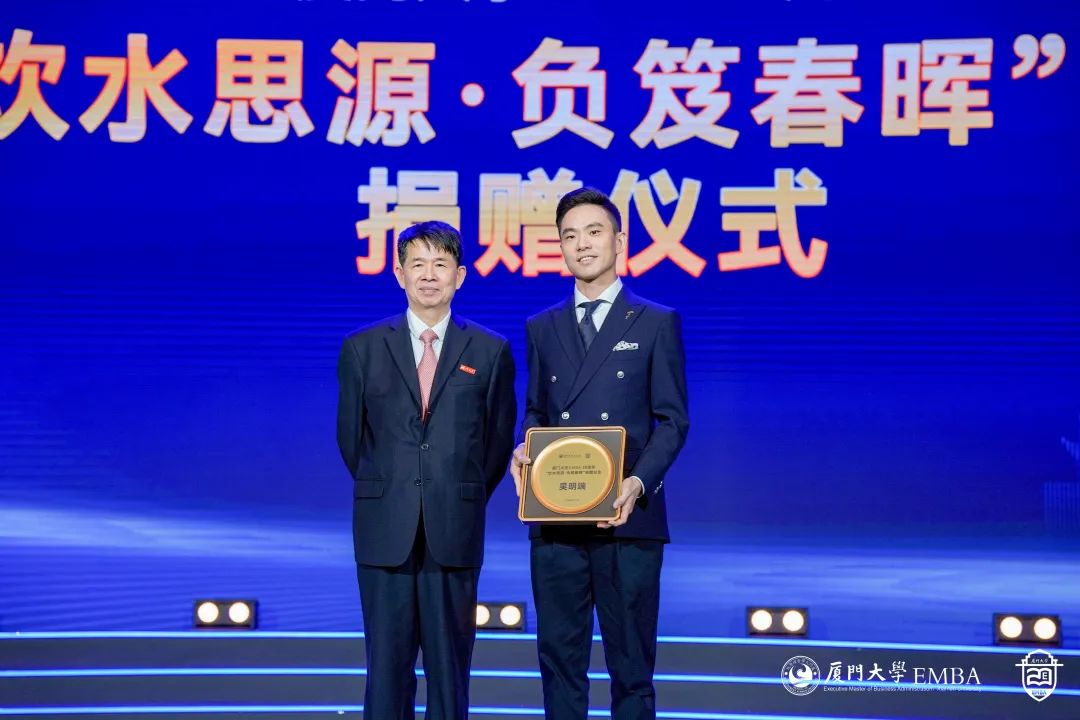 厦门大学校长助理、学校办公室主任李智勇老师为10位校友颁发“首届公益直播爱心赞助奖”。
