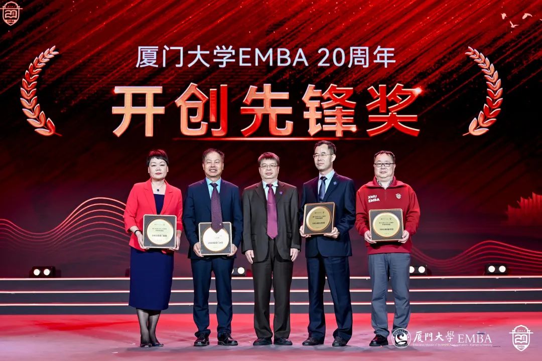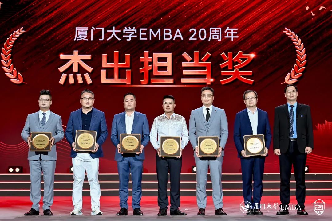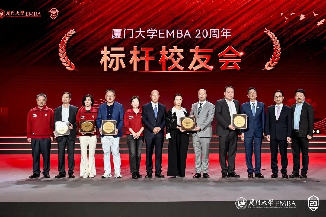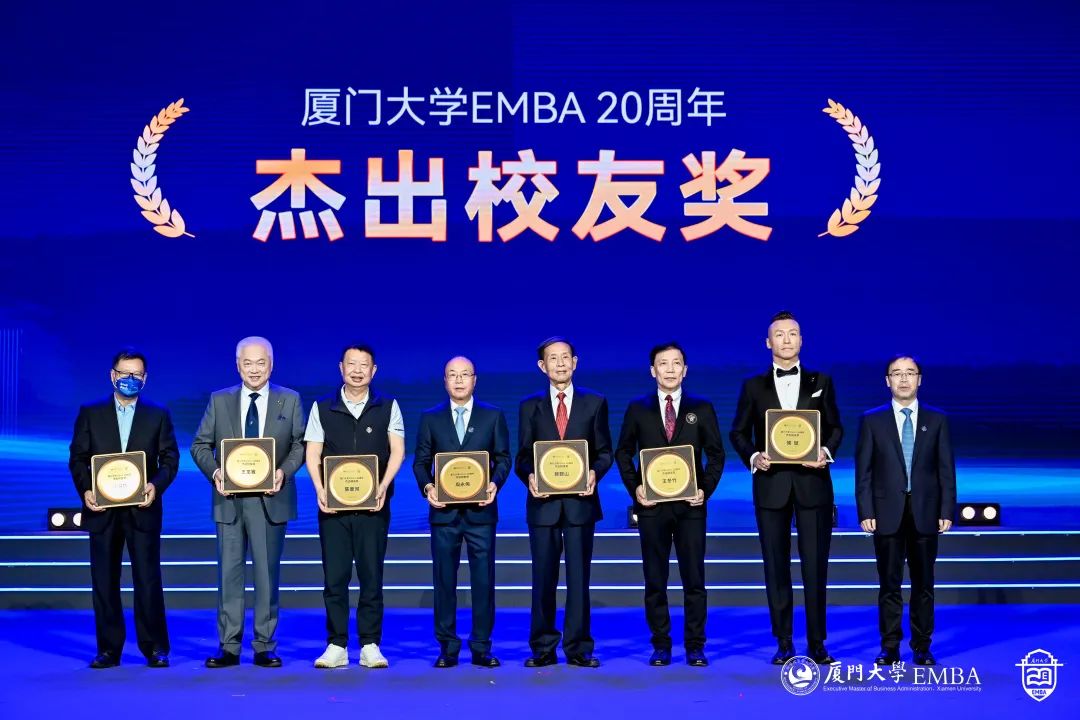EMBA20年,有大量的校友为社会做出杰出的贡献,获得社会的肯定和认可,荣获众多荣誉。他们踔厉奋发,是时代的追梦人,也是时代的领航人,是众多厦E学子的楷模与榜样。学校为获得过“全国优秀企业家”、“五一劳动奖章”、“全国劳动模范”称号的校友们授予杰出校友奖。张宗益校长为他们颁奖。他们是:陈景河、卢金来、许晓曦、姚 燕、赖鞍山、周永伟、马洪斌、丁水波、丁世忠、陶以平、刘迎忠、张水利、侯斌、龚伟、余枫、王良、竺保国、蔡金鑫、王龙雏、李国彪、周南方、夏华、王冬竹。
