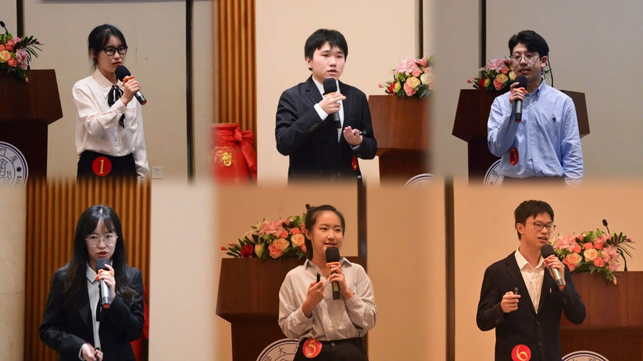 随后,比赛正式开始。2021级法学院硕士生杨弋戈、2020级管理学院本科生张家荣、2022级管理学院硕士生陈洪浩、2021级经济学院硕士生高维纳、2019级管理学院本科生赵思雨、2020级经济学院本科生游仕骐6位优秀选手,经过简历海选和面试选拔,从150名参赛选手中脱颖而出,将在本场决赛中通过自我介绍、职业测评、无领导小组、评委问答四个环节展开激烈角逐。