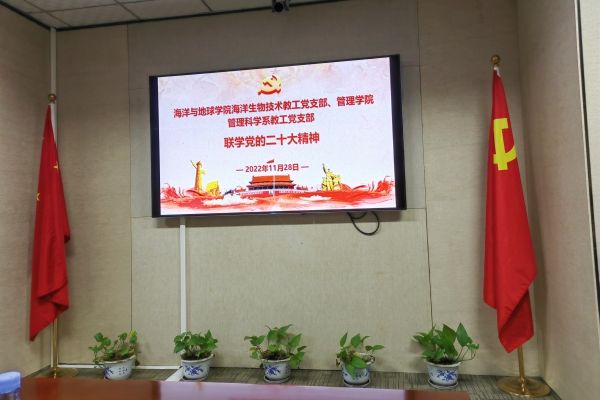 管理学院党委书记邱七星表示,为深入学习贯彻党的二十大报告,希望两个全省高校党建工作的样板支部,能发挥各自的学科优势,互学互助共同提升。海洋与地球学院党委书记吴立武围绕党的二十大报告中关于“教育、科技、人才是全面建设社会主义现代化国家的基础性、战略性支撑”的重要论述,结合学科特点,和目前的工作部署进行阐述,将学习成果应用于实际工作。